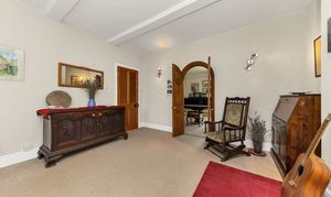 Upstairs to the first floor, this extended period home continues to offer unique and incredibly generous accommodation, with a long wide hallway leading to 5 well-proportioned bedrooms, and a large family bathroom comprising a corner bath, a double shower, a WC, a hand wash basin, storage and two heated towel rails / vertical radiators. The master bedroom is an incredible size, benefiting from windows and double French doors to a triple aspect, glorious far-reaching countryside views, wood flooring, pendant lighting, a large balcony with room for seating, a separate dressing room with integrated wardrobes, and a large en-suite, comprising a bath, a corner shower, a WC, a hand wash basin and a heated towel rail / vertical radiator. There are two staircases to the first floor, and the master suite benefits from its own direct spiral staircase access.