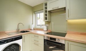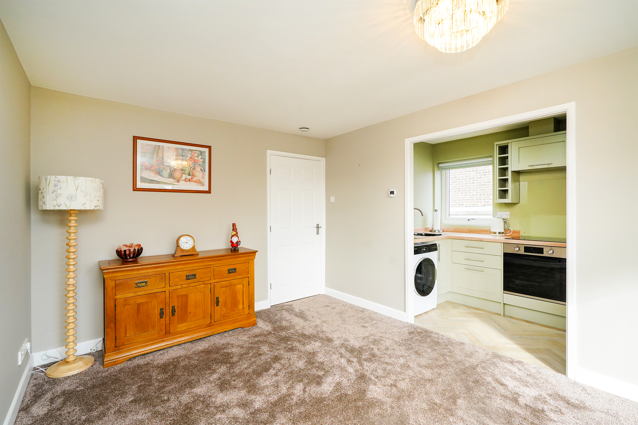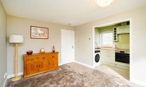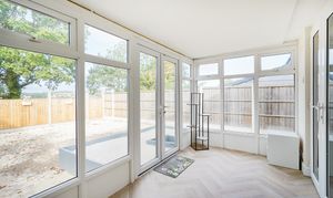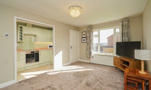 The generous lounge/diner, flooded with natural light, flows seamlessly into the modern fitted kitchen, complete with a range of integrated appliances. Both bedrooms are well-proportioned, with the second bedroom allowing access to the conservatory. The three-piece shower room serves both bedrooms.
