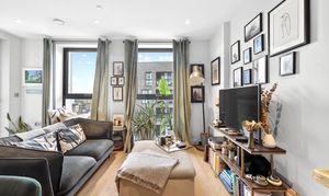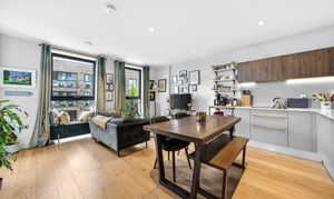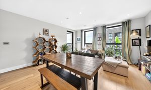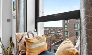 This stunning 1 bed apartment measuring 603 square foot is available now through Nested. Located on the seventh floor of the building, the apartment benefits from a private outdoor terrace/ winter garden, secure video entry, hardwood floors with underfloor heating and floor to ceiling windows which flood the apartment with plenty of natural light. Residents benefit from 24 hour concierge, landscaped private courtyard gardens, private residents' gym and secure cycle storage.