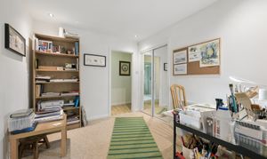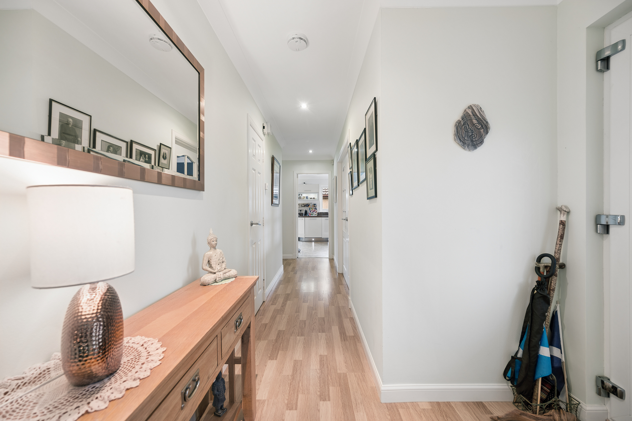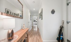 Returning to the hallway, the warm timber flooring continues, enhancing the sense of cohesion and comfort as you move through the home. The hallway itself feels bright and spacious, with tasteful décor and ample wall space creating a wonderful blank canvas for artwork or decorative touches.
