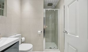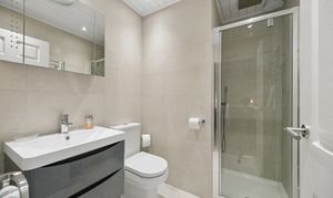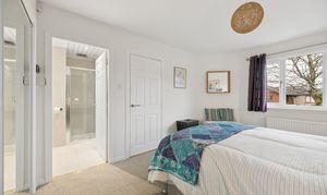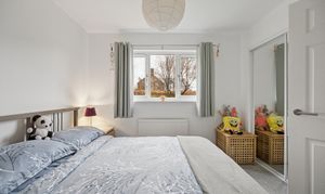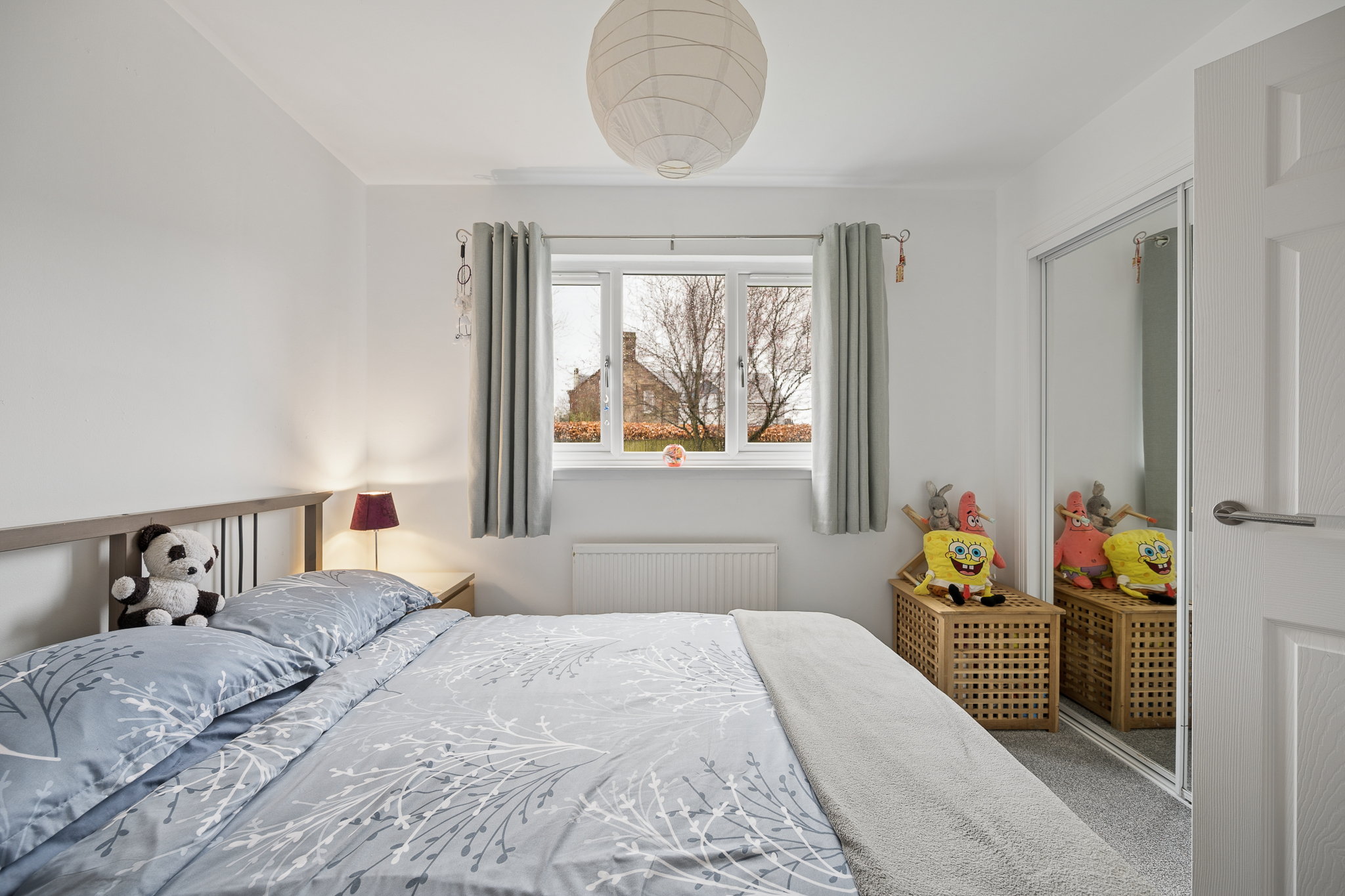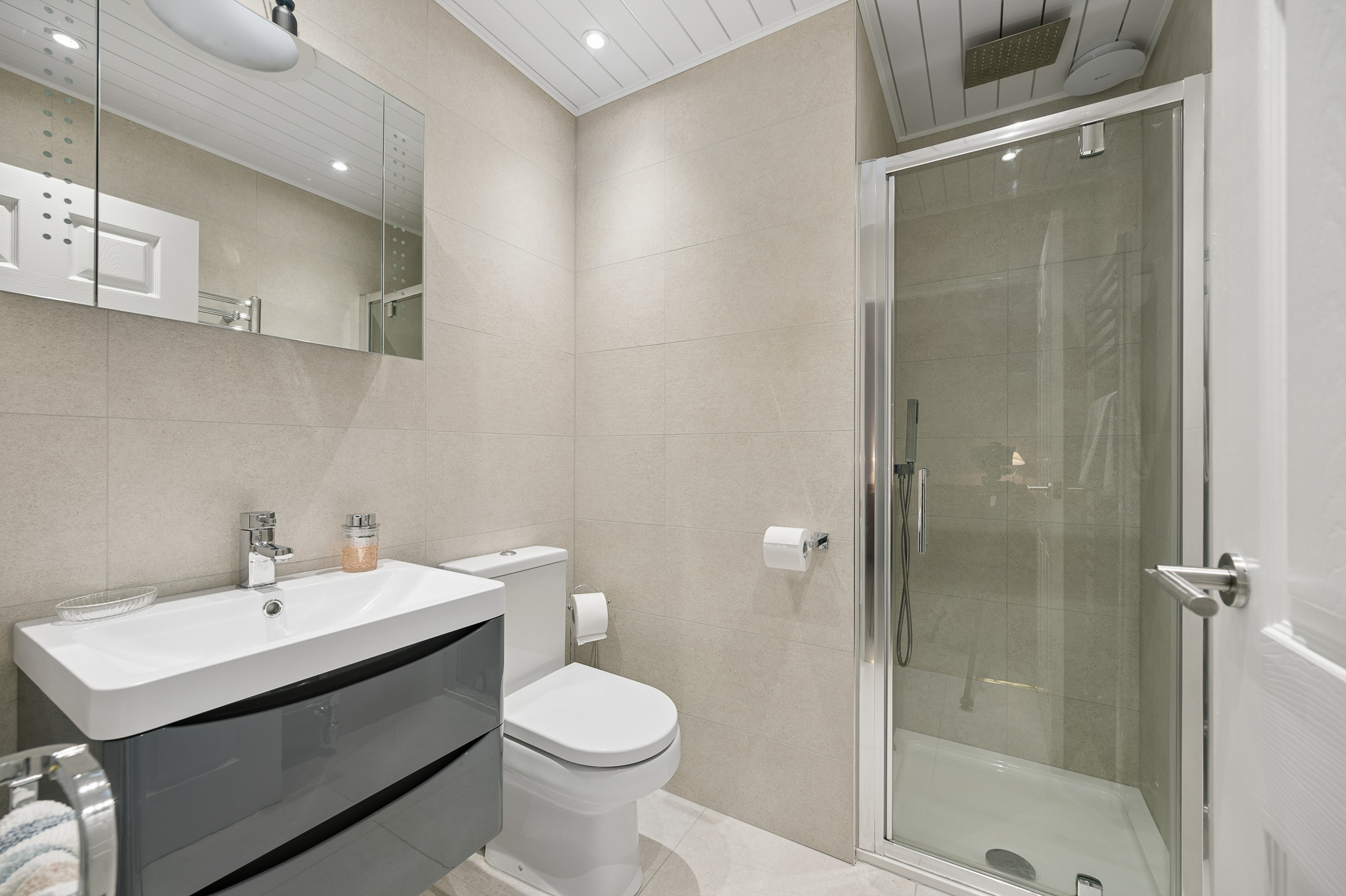 Immediately to the left hand side as you enter, you will find Bedroom One, a generous and comfortable principal bedroom. This room benefits from built in wardrobe storage, ensuring practicality without compromising on space and easily accommodates a large bed and additional furnishings. Flooded with natural light from the front facing window, it feels both peaceful and welcoming. The room also enjoys the luxury of its own private en-suite , beautifully finished with modern tiling. The space features a sleek walk in shower enclosure, contemporary vanity storage with integrated basin, WC and a large mirrored cabinet above, giving the room a clean and sophisticated finish. Fully tiled and thoughtfully designed, the en-suite provides a stylish and practical addition to the main bedroom.