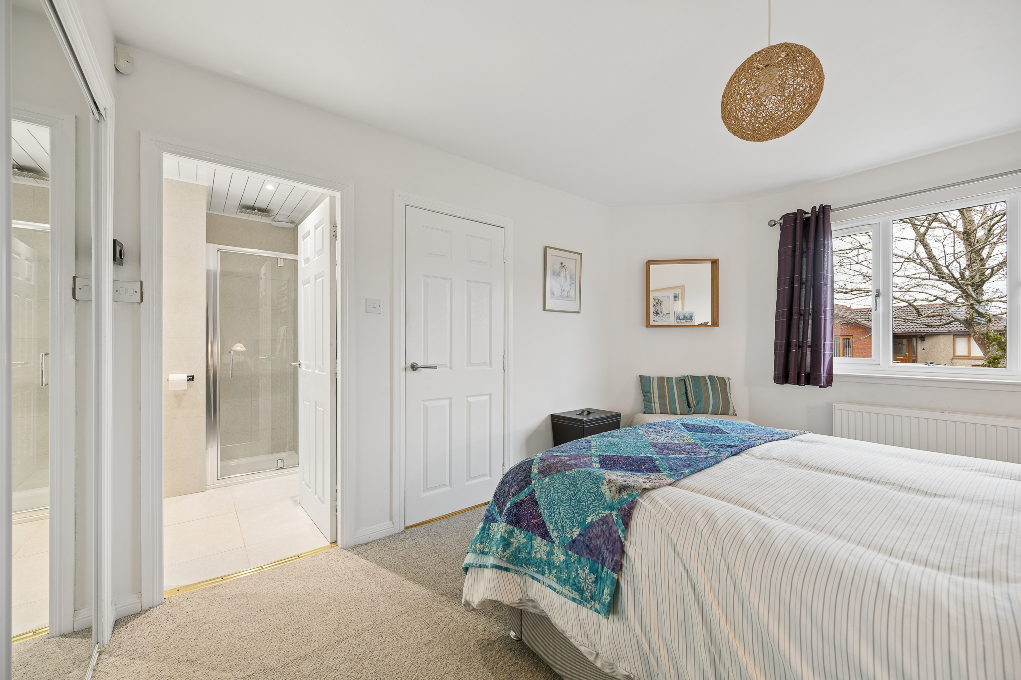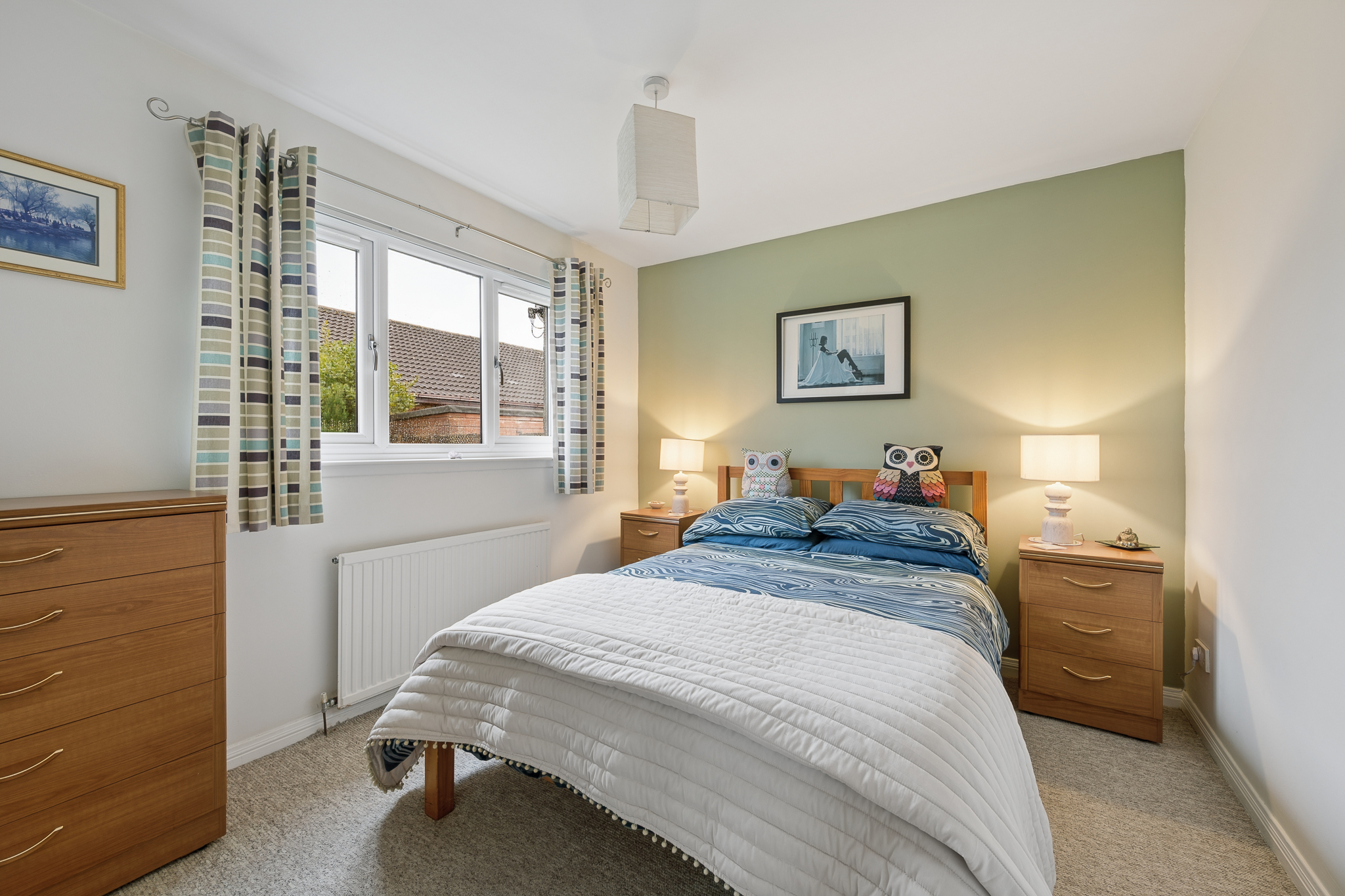 Further along the corridor you will find Bedroom Two, a fantastic double bedroom featuring a distinctive feature wall that adds warmth and character to the space. As with all four bedrooms in the home, this room benefits from built-in wardrobe storage, ensuring excellent functionality and keeping the room feeling open and uncluttered.