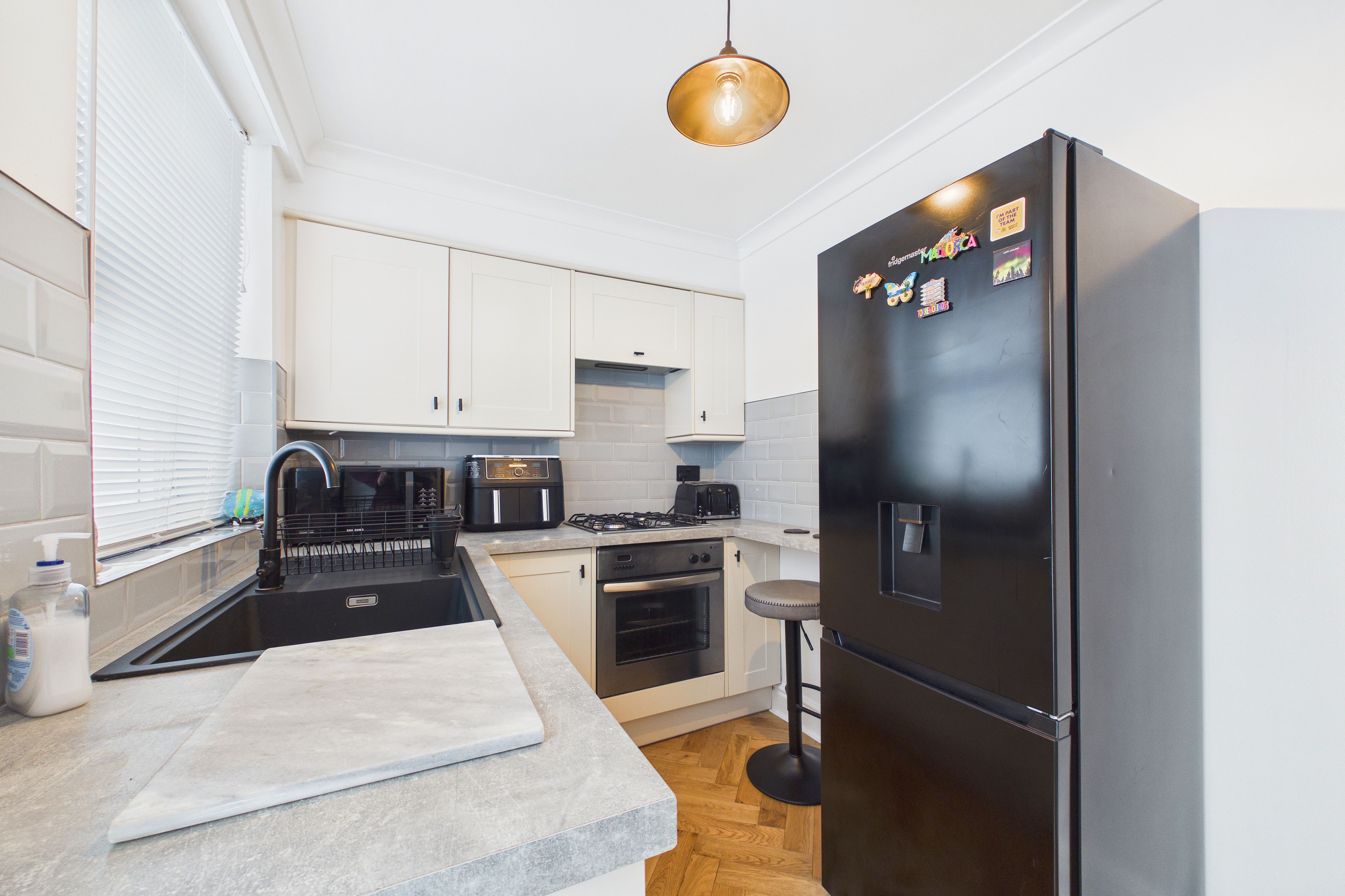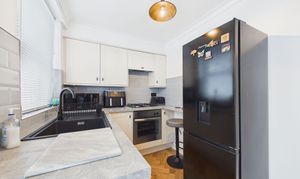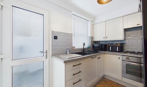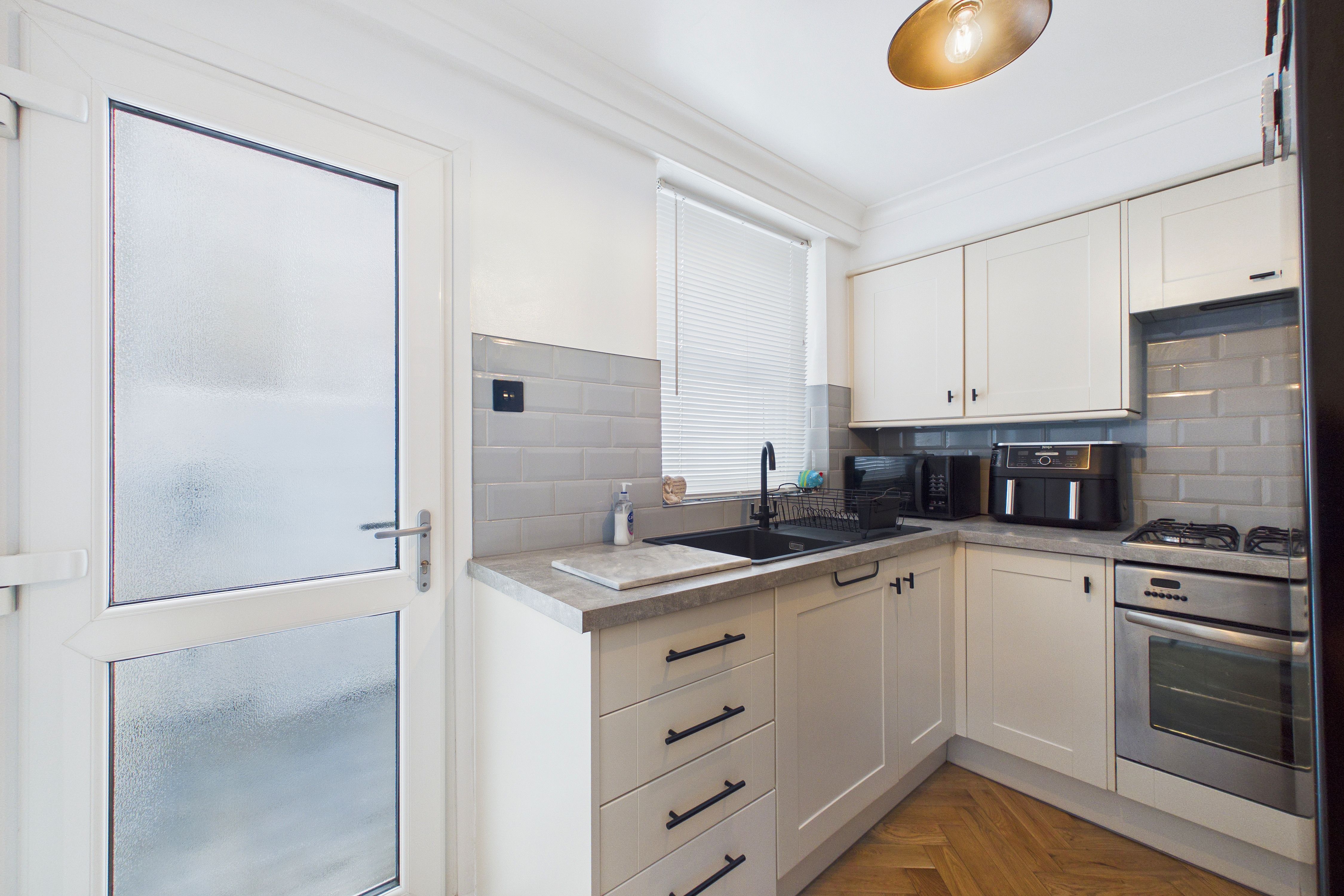 The contemporary modern kitchen is well fitted with modern units and stylish worktops and also incorporates a breakfast bar.