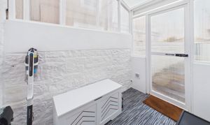 From the kitchen, a practical rear lean-to offers additional storage and features an electric point, perfect for housing appliances or keeping household essentials neatly tucked away.