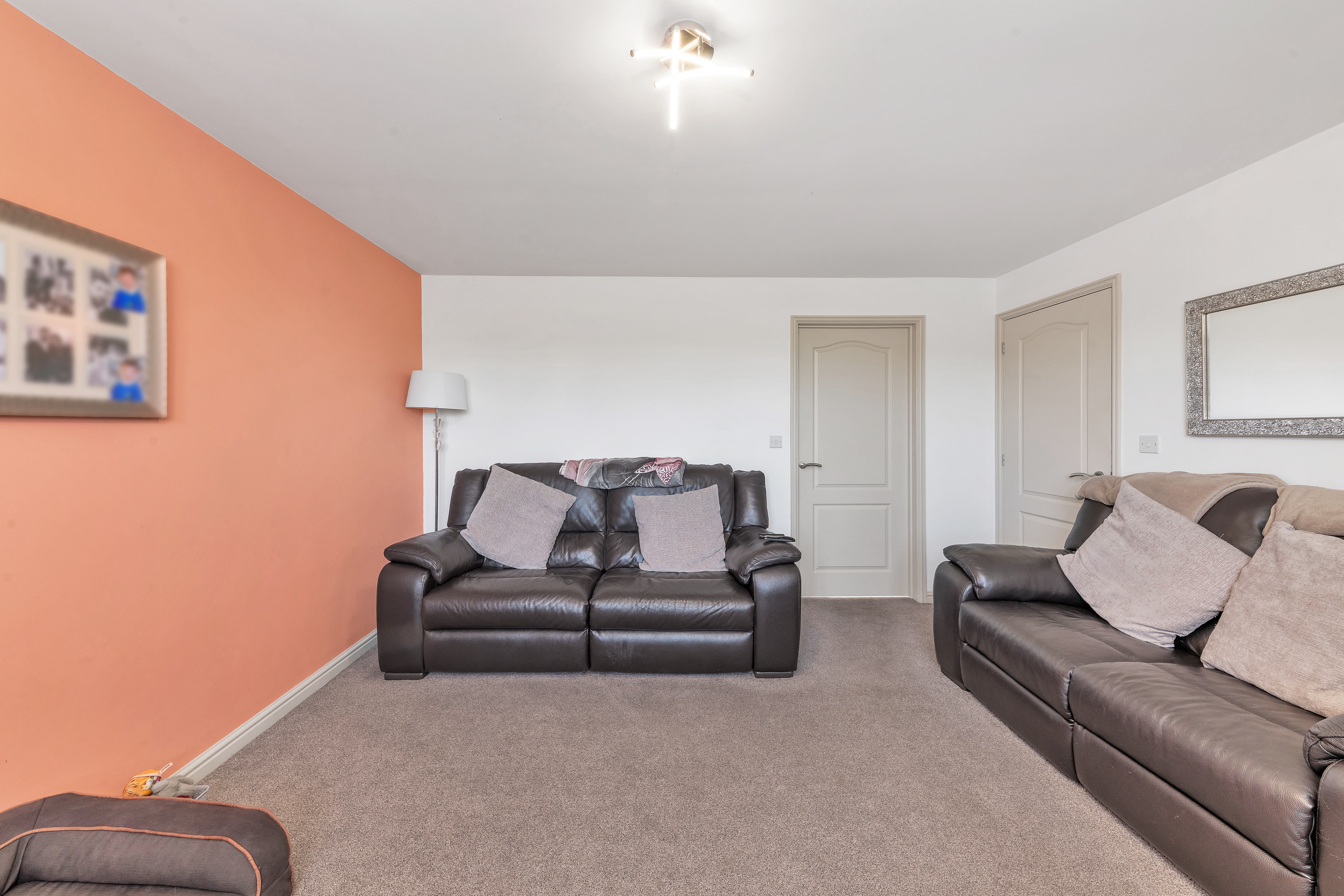 The lounge is a very good size, enjoying a large window to a front aspect, thick carpets, pendant lighting, neutral decor and ample space for a variety of lounge and storage furniture.