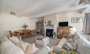 - Spacious sitting/dining room with feature fireplace and large bay window overlooking The Common