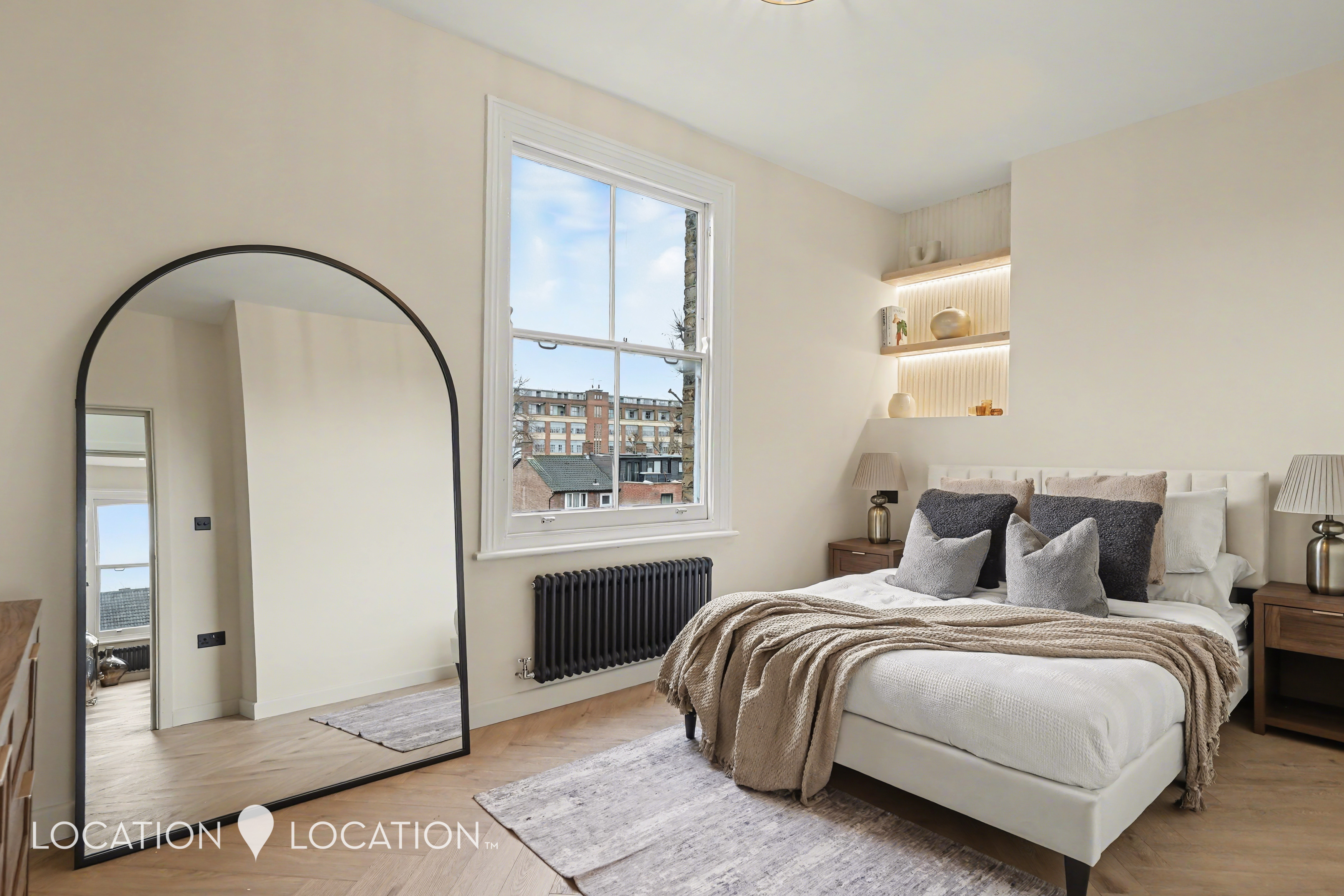 The two well-proportioned bedrooms are calm and comfortable, and the bathroom is a standout – fully tiled with LED lighting, a smart mirror and matte black fittings for a sharp, modern look. Every detail has been carefully considered, making this a home you can simply move straight into and together with sole access to a loft- there is plenty of storage to keep your home clutter-free. Offered chain free with a brand new 125-year lease, this is a rare opportunity to secure a refined period apartment with a fresh, contemporary twist.