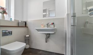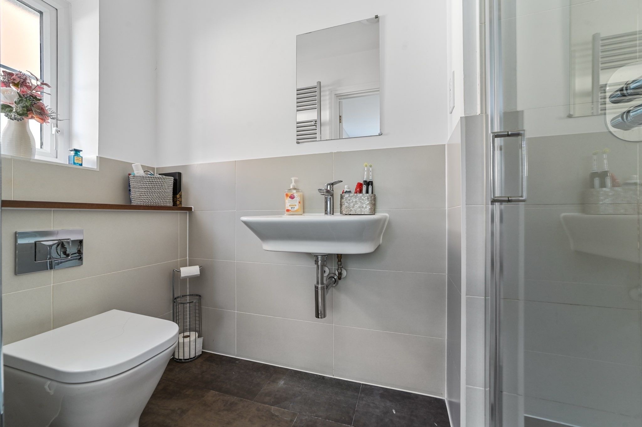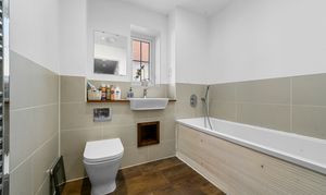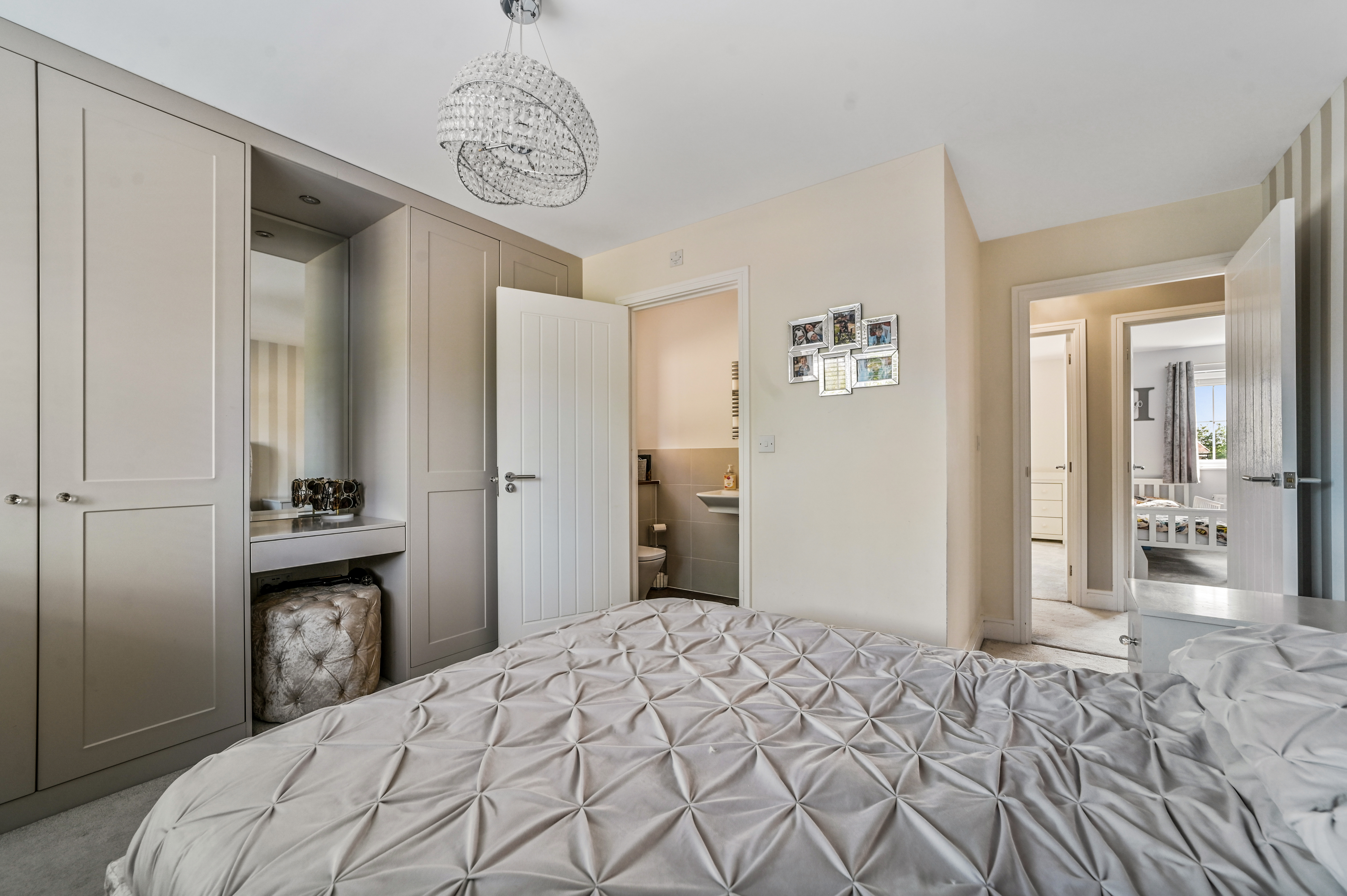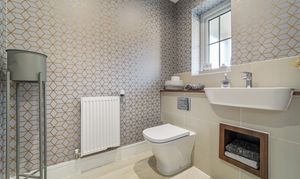 The first floor provides four bedrooms all positioned off the landing which includes a useful airing cupboard. The main bedroom to front has an ensuite bathroom including fully tiled shower cubicle, low level WC, suspended wash hand basin and wall mounted chrome towel rail. The other three bedrooms are all served by a generous sized family bathroom including panel enclosed bath, wash hand basin with open shelf beneath, low-level WC and ladder style heated towel rail.