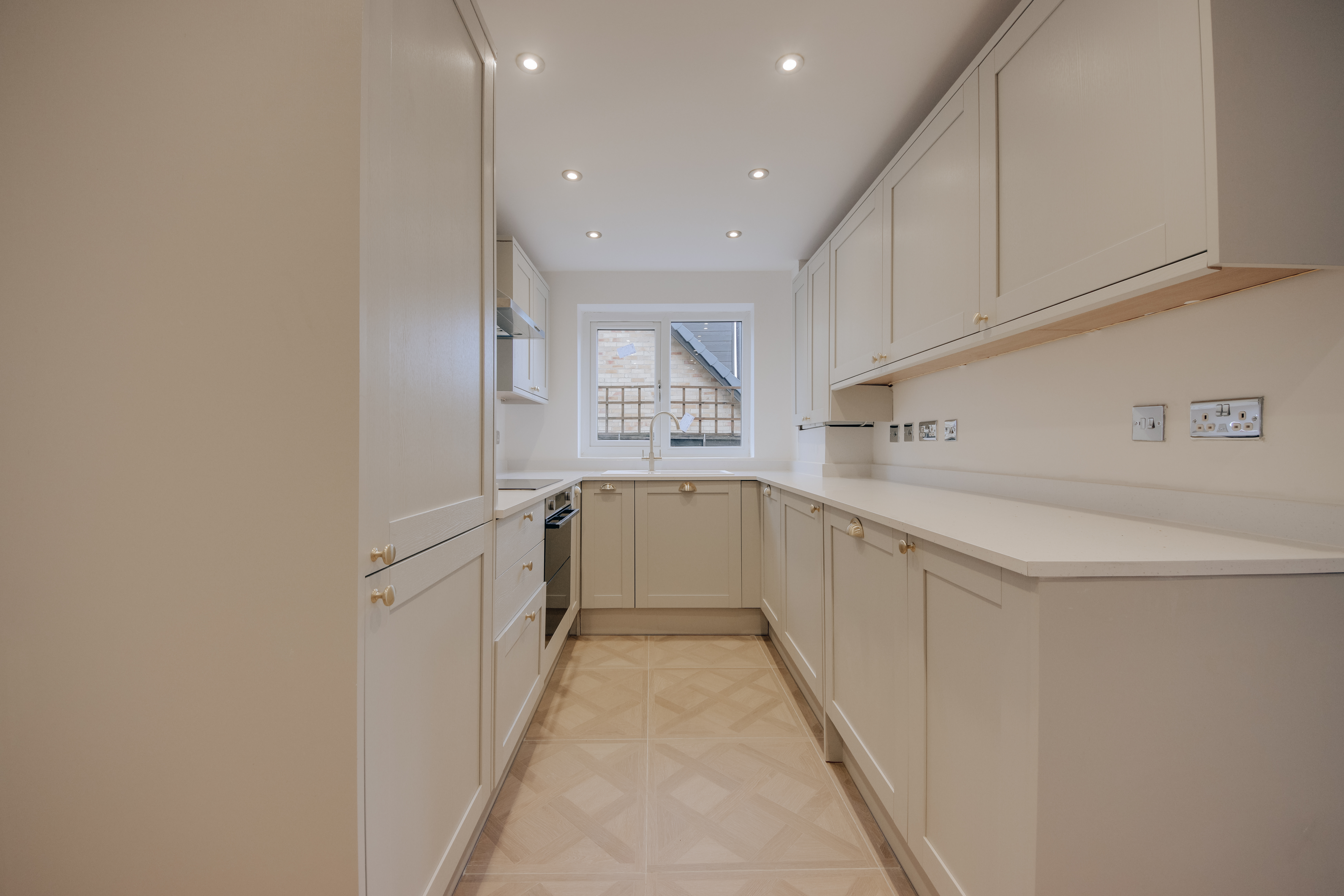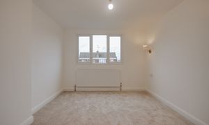 Upstairs, three well-proportioned bedrooms continue the home’s refined narrative, each offering a sense of calm and comfort. The family bathroom is finished to a high standard, with a deep bathtub, integrated shower, and contemporary fittings that sit comfortably within the home’s overall aesthetic.