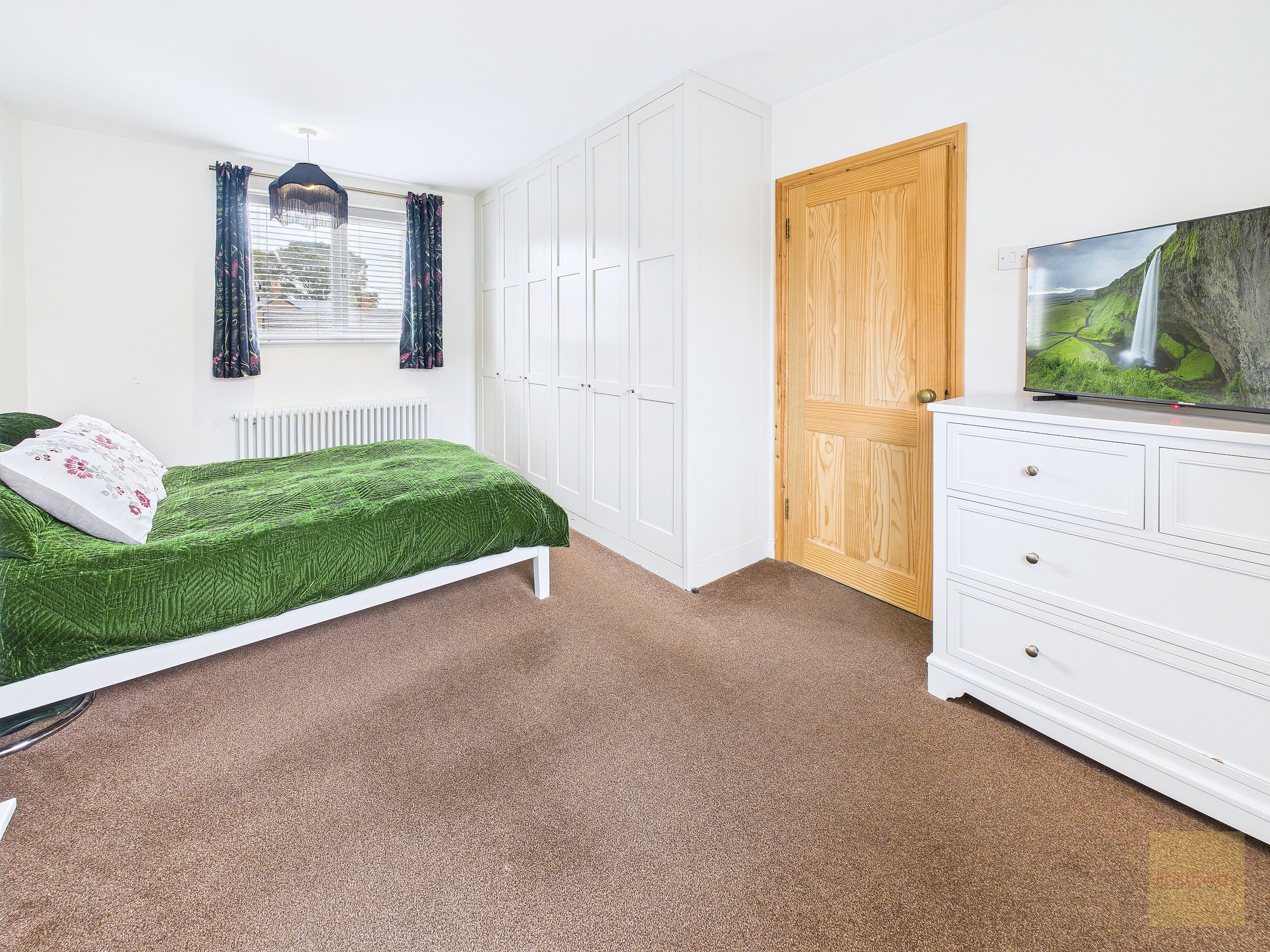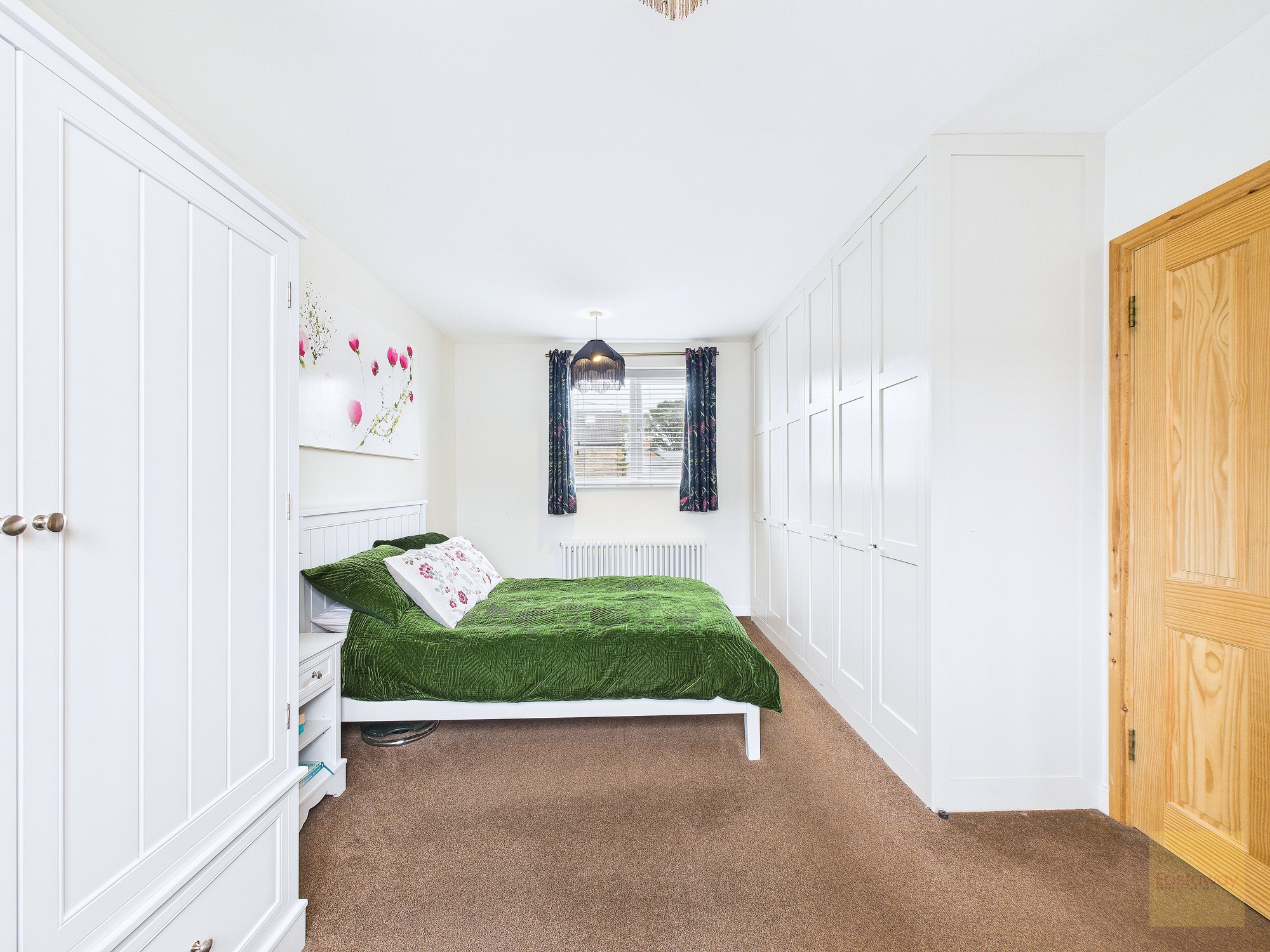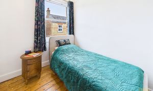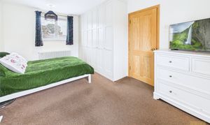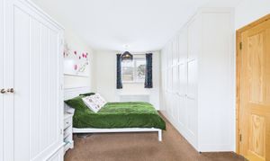 Upstairs, the home continues to impress. The main bedroom feels calm and private, with windows on two sides and bespoke fitted wardrobes that make excellent use of space. The second bedroom also has bespoke built-in wardrobes and a fantastic contemporary en suite with a shower, wash basin and WC. The third bedroom, while smaller, would make a wonderful home office, nursery or dressing room.