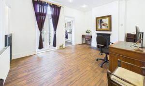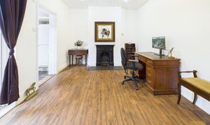 Just off the living room is a second reception room that’s currently used as a home office and dining space. It has another lovely fireplace and plenty of natural light, creating a calm and comfortable area for working or entertaining. A small storage room just off here is currently used as a mini utility and storage space, but it could easily become a ground-floor WC if you wanted.
