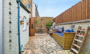 Outside, the garden is fully enclosed and designed for easy living. It’s private and peaceful, with built-in seating, space for plants or a small dining set, and direct access into the garage. Having a garage this close to the town centre is a real rarity, especially at this price point, and it adds fantastic practicality for parking or storage.