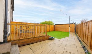 Externally, the southwest-facing rear garden is a true highlight with low maintenance artificial grass, stylish decking and low-maintenance finishes. The hut at the back provides impressive versatility, functioning perfectly as a home office, gym, studio, or extra storage space. The property also benefits from a private two-car driveway, with additional on street parking available.