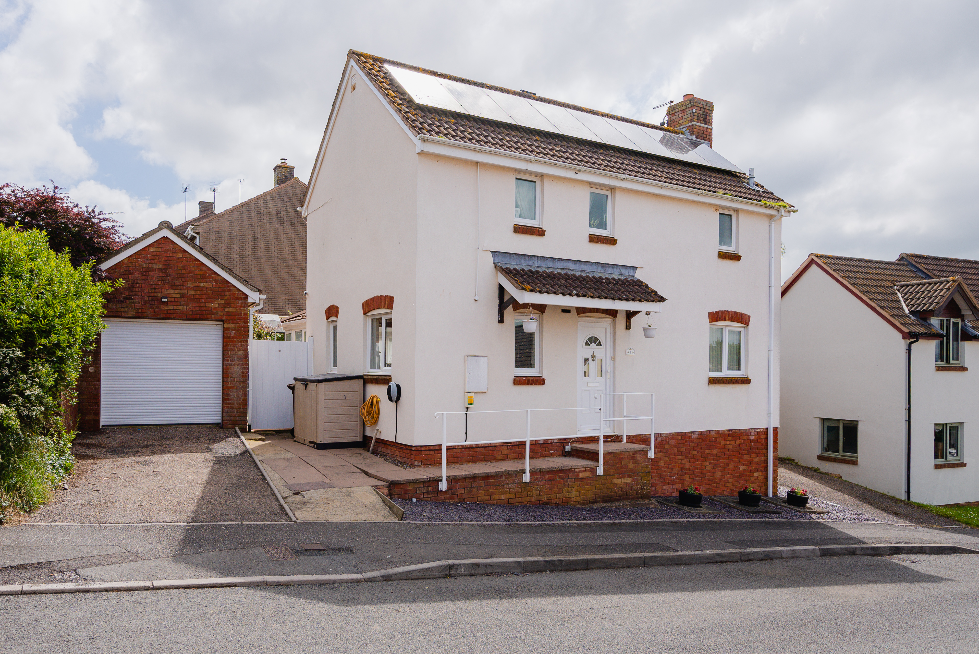 If in Crediton High Street, proceed West towards Copplestone on the A377. When reaching Copplestone, go through the traffic lights and bear left up the hill onto the A3072 towards Bow. Upon entering Bow, turn left into Station Road (in the middle of the village) and then take the first right into Godfreys Gardens. Go almost to the end and turn right into Hobbs Way and the house will be found on your right.