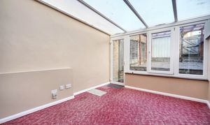 The ground floor is entered via an enclosed porch leading into a generous lounge, providing a comfortable and inviting space to relax. The fitted kitchen sits to the rear, offering practical storage and worktop space, and opens through to a superb conservatory which greatly enhances the living accommodation. This bright and versatile space enjoys direct access to the garden and is ideal for dining, entertaining, or use as a second sitting area.