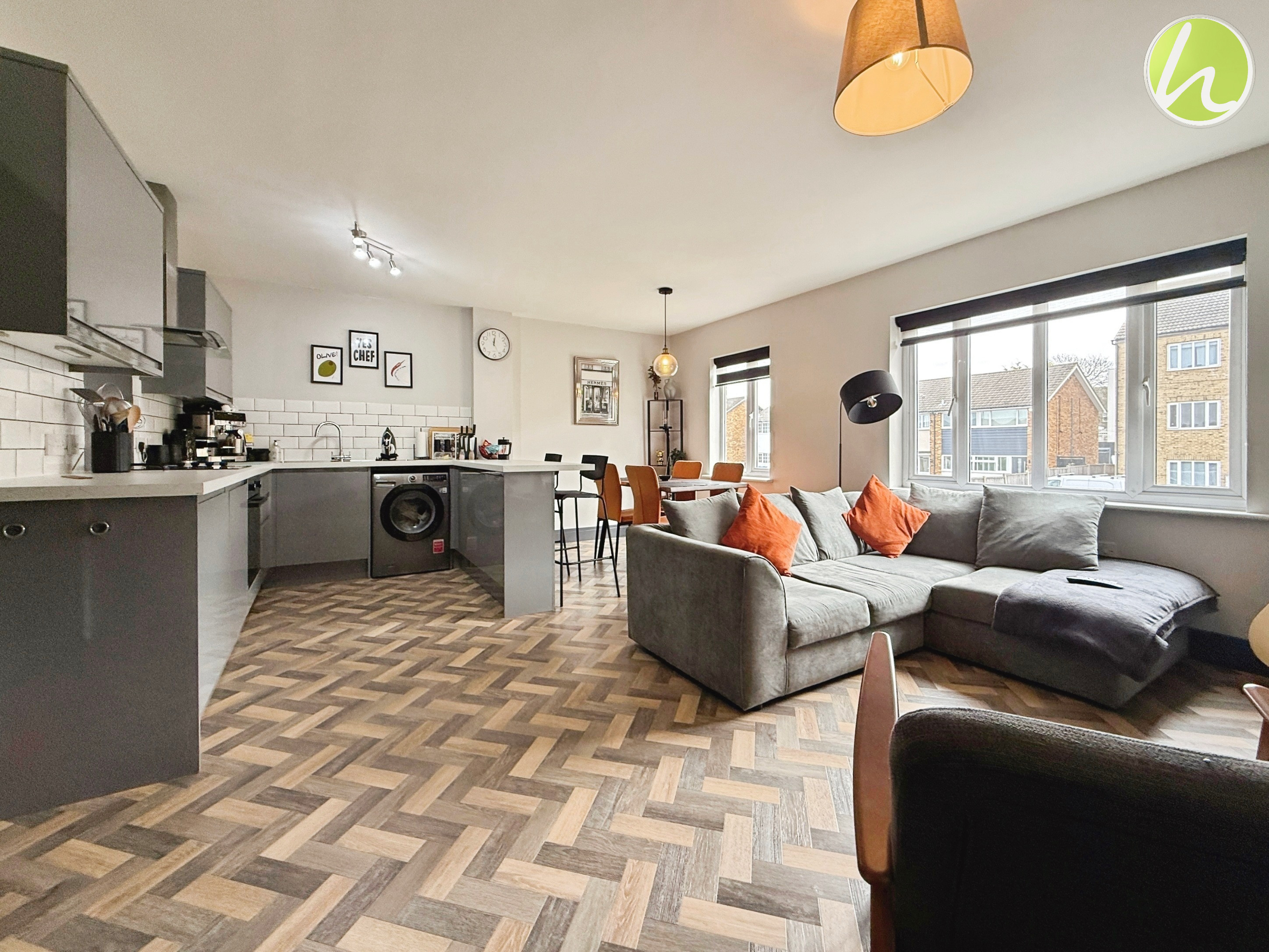From the moment you enter, you are greeted by a sense of space and light, with a beautifully improved interior that has been thoughtfully designed to cater to modern lifestyles. The heart of the home is the stunning open plan living area, seamlessly integrating a newly fitted kitchen that boasts sleek cabinetry, integrated appliances, and tasteful finishes, perfect for both casual dining and sophisticated entertaining. The master bedroom is a true sanctuary, featuring bespoke fitted wardrobes that maximise storage while maintaining a clean, uncluttered aesthetic, while the second bedroom offers generous proportions, making it ideal for guests, a home office, or a growing family. The modern family bathroom exudes luxury, with contemporary fixtures and elegant tiling providing a tranquil retreat for relaxation. With a long lease and reasonable maintenance charges, this property represents a sound investment as well as a stylish home, and the added benefit of being offered with no onward chain ensures a smooth and swift purchase process.