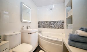 This impeccably presented three-bedroom semi-detached house offers a delightful combination of modern comfort and convenience. The property boasts a spacious paved drive to the front, providing ample parking space. The ground floor welcomes you with an inviting entrance hall leading to a bright lounge featuring a bay window and a stylish media wall. The adjacent modern kitchen diner is a focal point of the home, complete with an island, induction hob, and an array of built-in appliances including a washer dryer, fridge freezer, dishwasher, and a hide and slide oven. The ground floor is further complemented by a luxurious bathroom featuring a spa jet bath, a separate shower with steam and radio functionalities. Upstairs, the property accommodates three bedrooms, with the master bedroom benefitting from built-in wardrobes and an en-suite WC. The back garden provides a tranquil retreat with lawn area and a patio, perfect for outdoor entertaining and relaxation. This home is meticulously maintained throughout, ensuring a comfortable and inviting living environment. Additionally, the property comes with an EPC rating of D and is offered as freehold with a council tax band A.