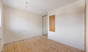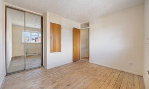 Upstairs, there are two bedrooms — a double and a single — ideal for use as a study or nursery. The main bedroom benefits from fitted wardrobes and a large window that fills the room with natural light. The family bathroom includes a bath with a shower over. The property is double glazed throughout, and the gas boiler is located in the kitchen.