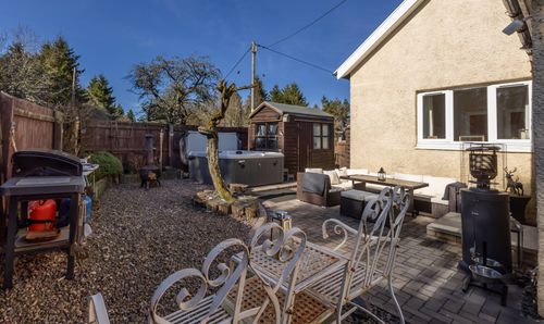Outside, the property continues to impress with a spacious driveway and a private, low-maintenance rear garden. The garden is a true outdoor haven, offering a mixture of artificial lawn and paved areas, making it ideal for relaxation and entertaining. A state-of-the-art hot tub, prime hosting space with garden furniture, and direct access to the kitchen create an exceptional area for outdoor living. The private garden is not overlooked, providing the perfect retreat with peaceful views. Additionally, a separate shared garden space offers storage sheds, adding to the overall appeal of this property.