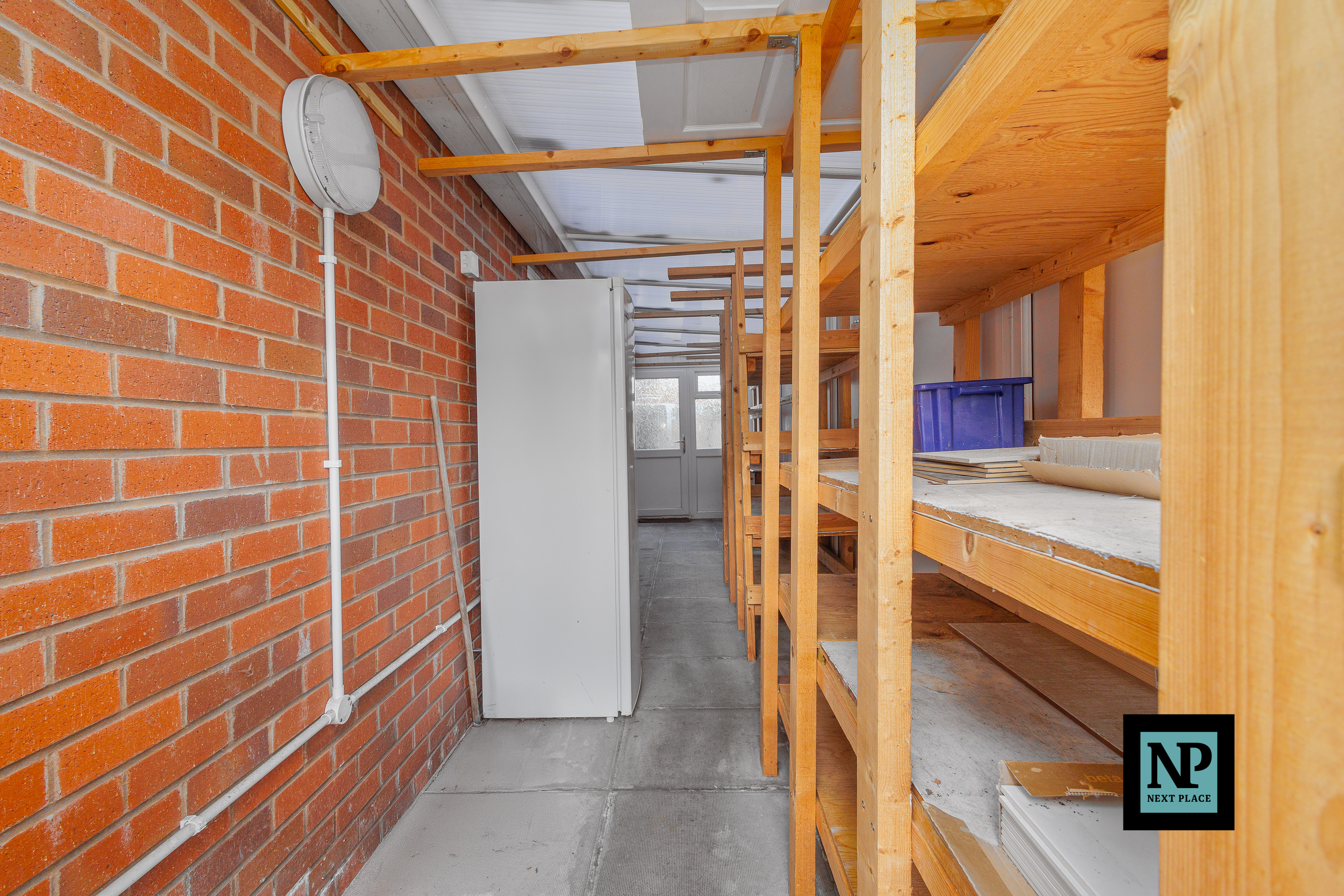 To the left of the property, you’ll also find additional storage space — perfect for garden tools or general household items.
