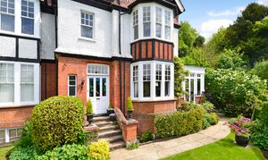 A large reception room benefits from an elegant bay window with fantastic views and an original fireplace. An abundance of natural light also flows into this room from the kitchen breakfast area.