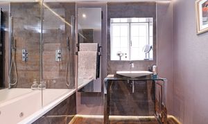 The property is approached from a private road with path and stone steps leading to a communal front door that displays a bespoke stain glass window telling a story of this unique location. Inside you enter an elegant communal hall.