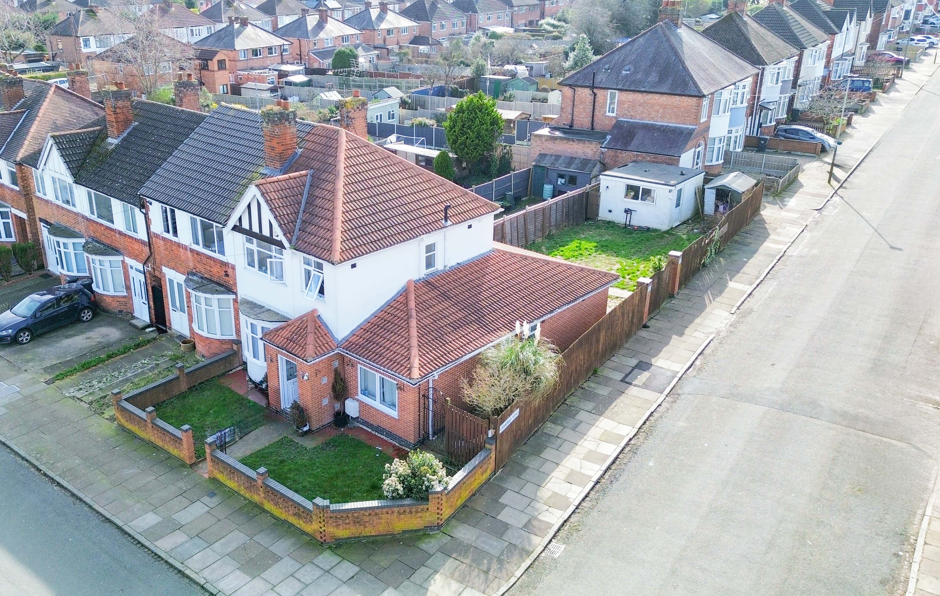 Located on Burnaston Road in Aylestone, this four-bedroom end townhouse occupies a generous corner plot and offers flexible accommodation arranged over two floors, with gardens to the front, side and rear, along with off-road parking and a double-sized garage.