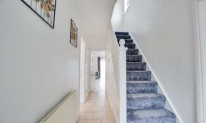 Double-glazed door to the front elevation, stairs to the first floor, under-stairs storage cupboard, tiled flooring.