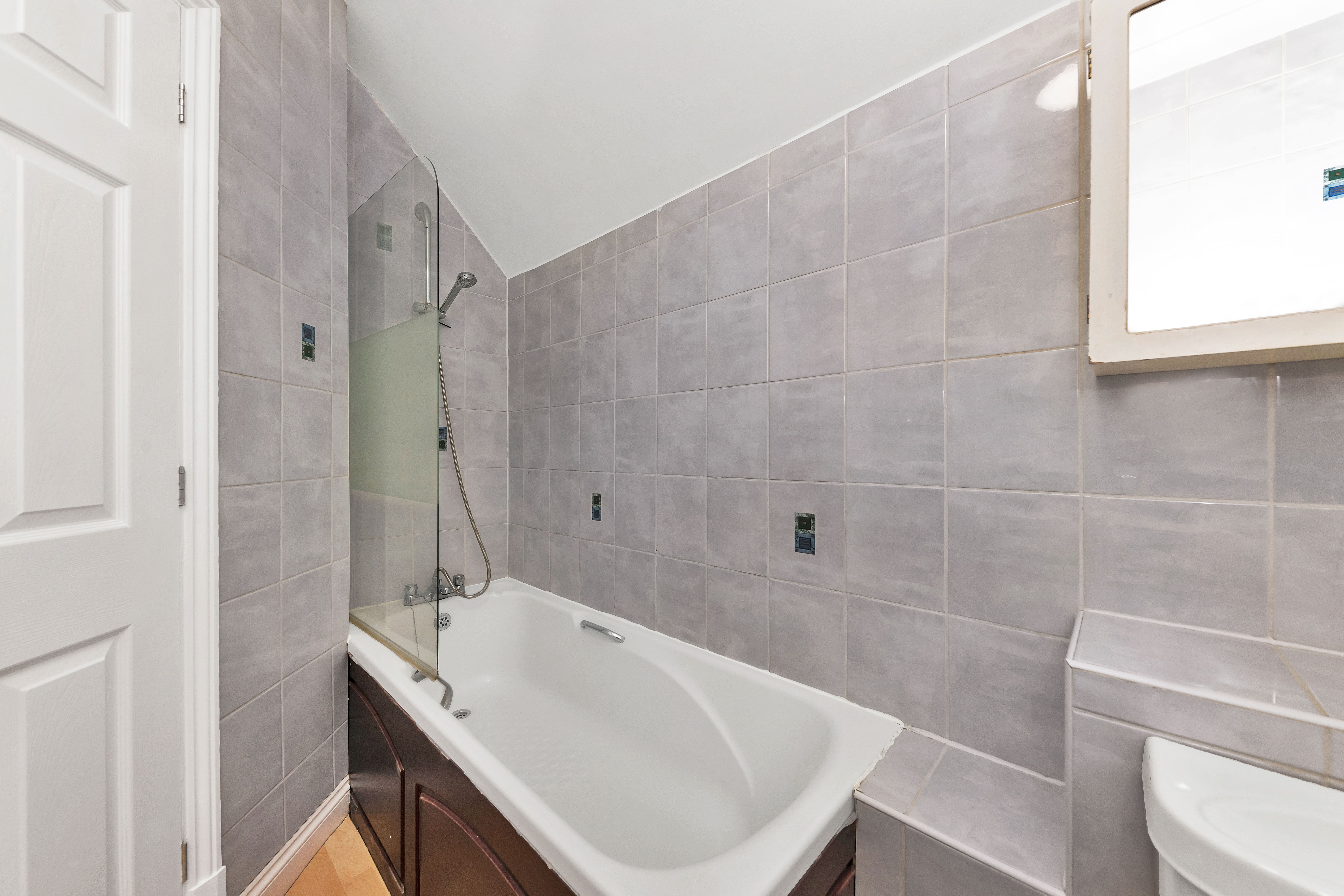 Through to the sleeping quarters, this well-presented flat continues to impress, with 1 double bedroom and a bathroom comprising a bath with an overhead shower, a WC and a hand wash basin.