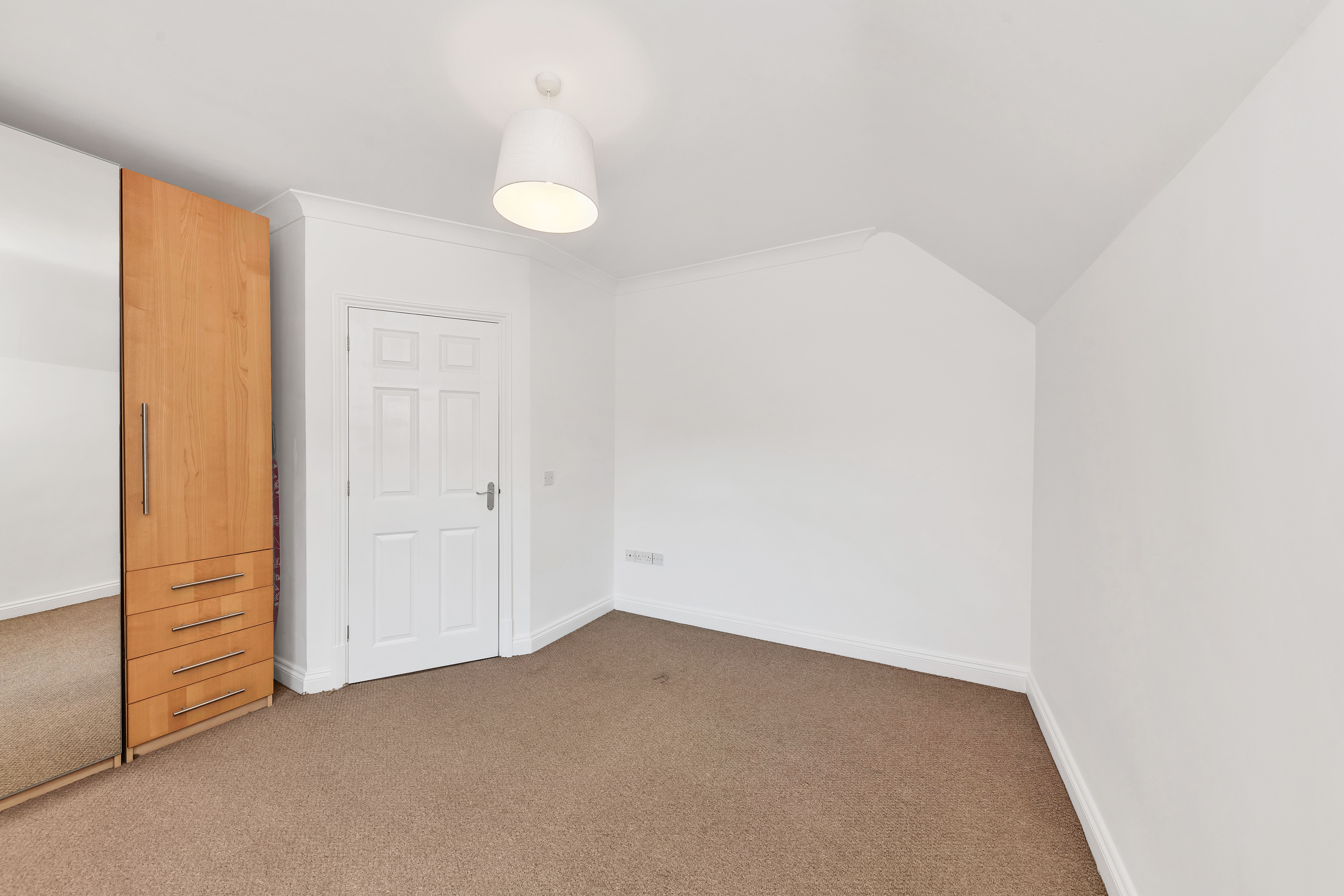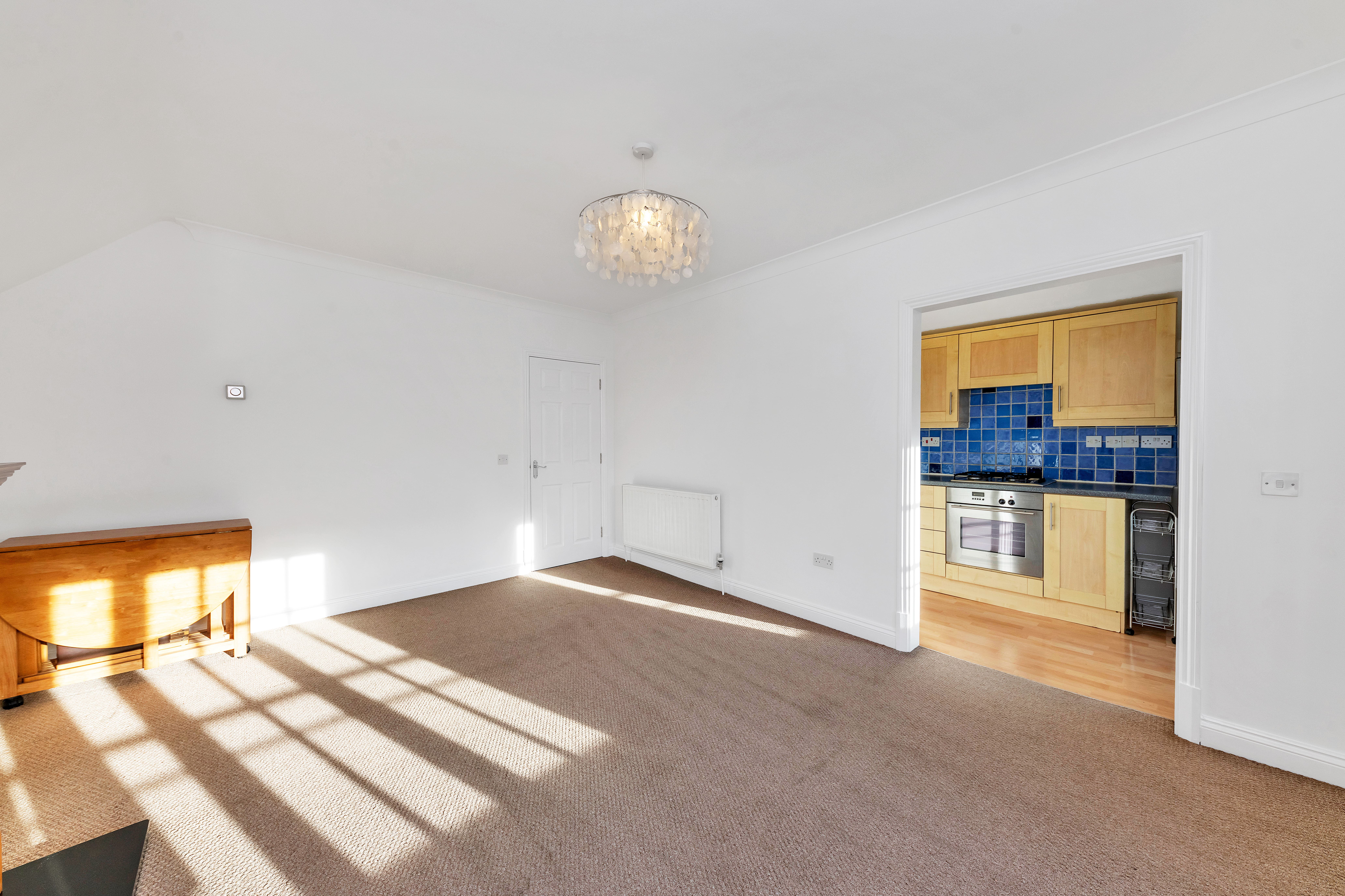 This top-floor flat belongs to a pleasant and well-maintained development, close to the town centre and train station in Royston, with direct links to both London Kings Cross and Cambridge. Upon stepping inside, the entrance hallway is bright and welcoming, with integrated storage, pendant lighting, carpets, room for furniture, and doors to the entire accommodation.