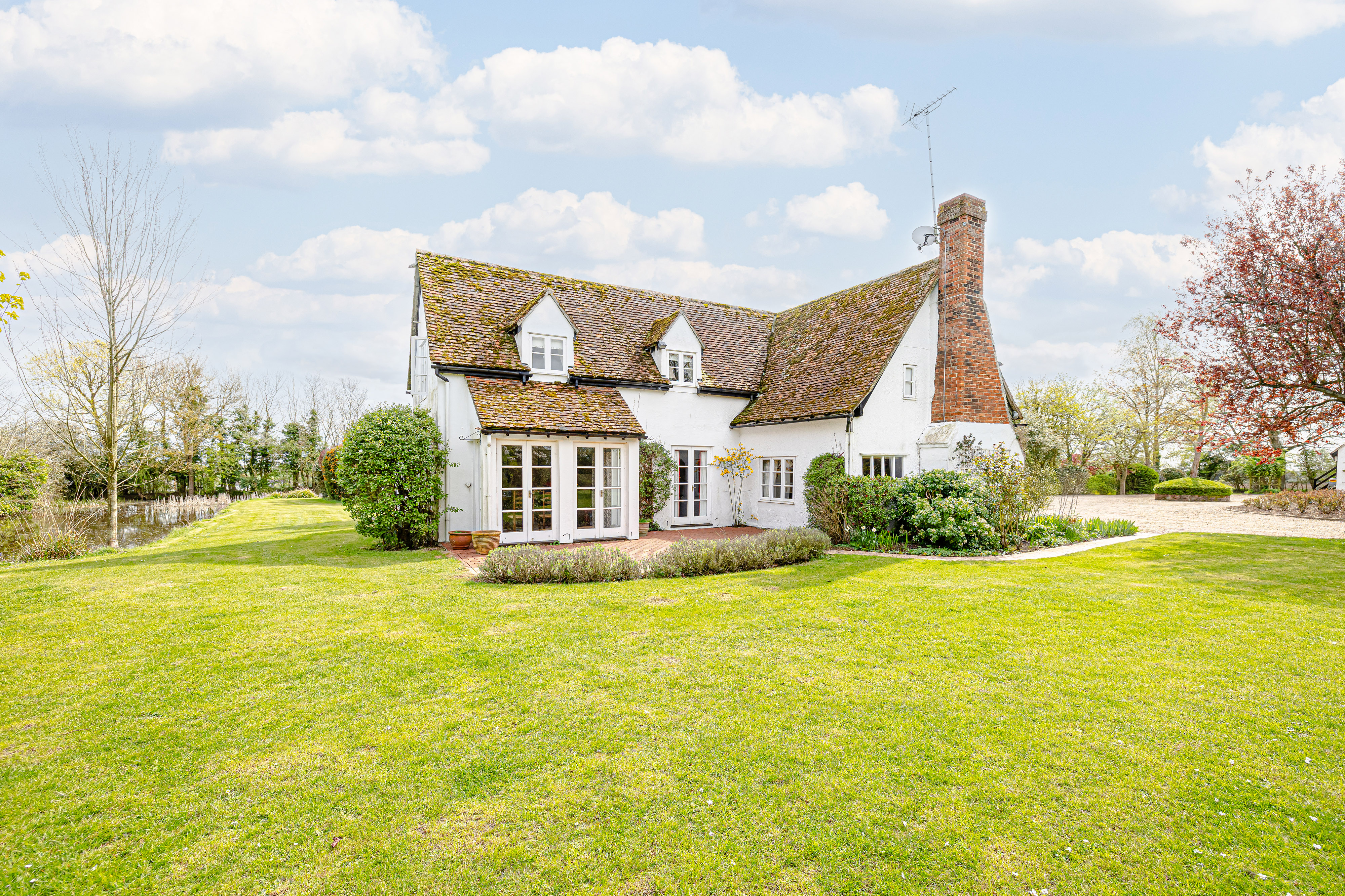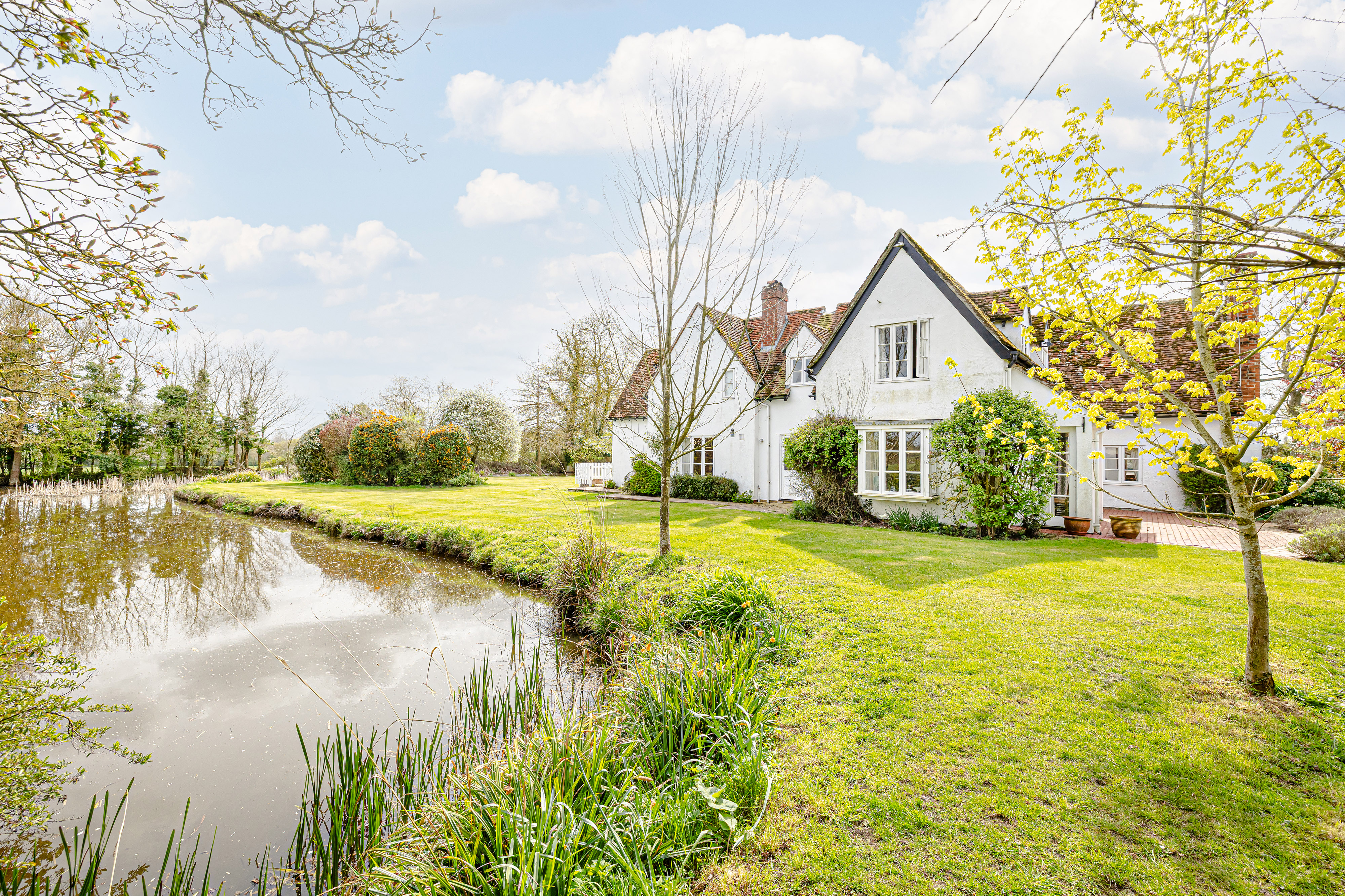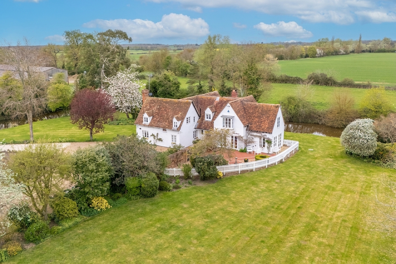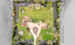 Approached via a sweeping gravel driveway and set beautifully within its moated grounds, the house immediately creates a lasting impression. The surrounding landscape is both dramatic and peaceful, with broad lawns, mature trees, established planting and far-reaching countryside views combining to give the property an extraordinary sense of privacy and beauty. The moat frames the house in unforgettable fashion, elevating the setting into something rarely found and impossible to recreate.