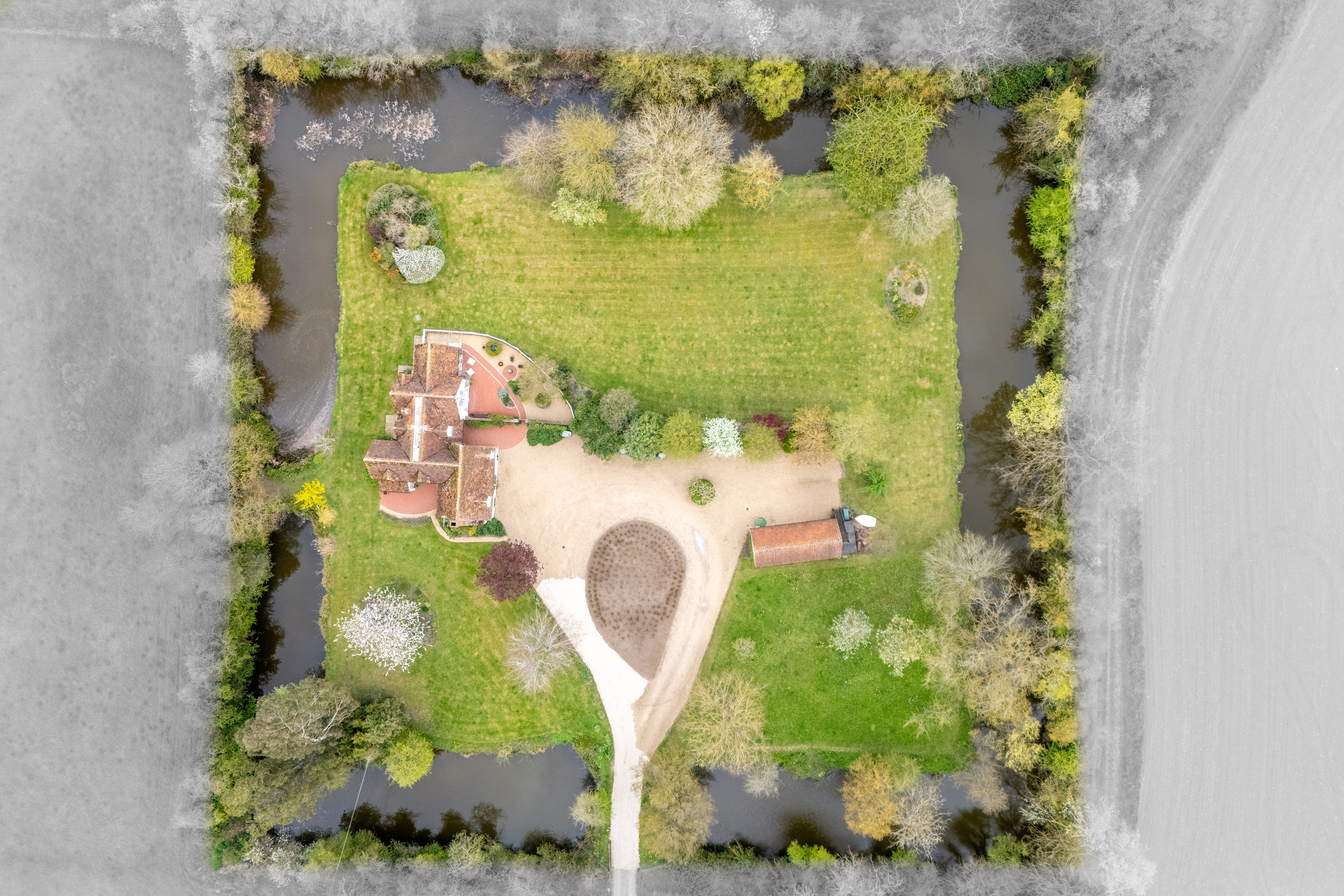 - Set within approximately 2 acres of beautifully maintained grounds, entirely encircled by a striking four-sided moat