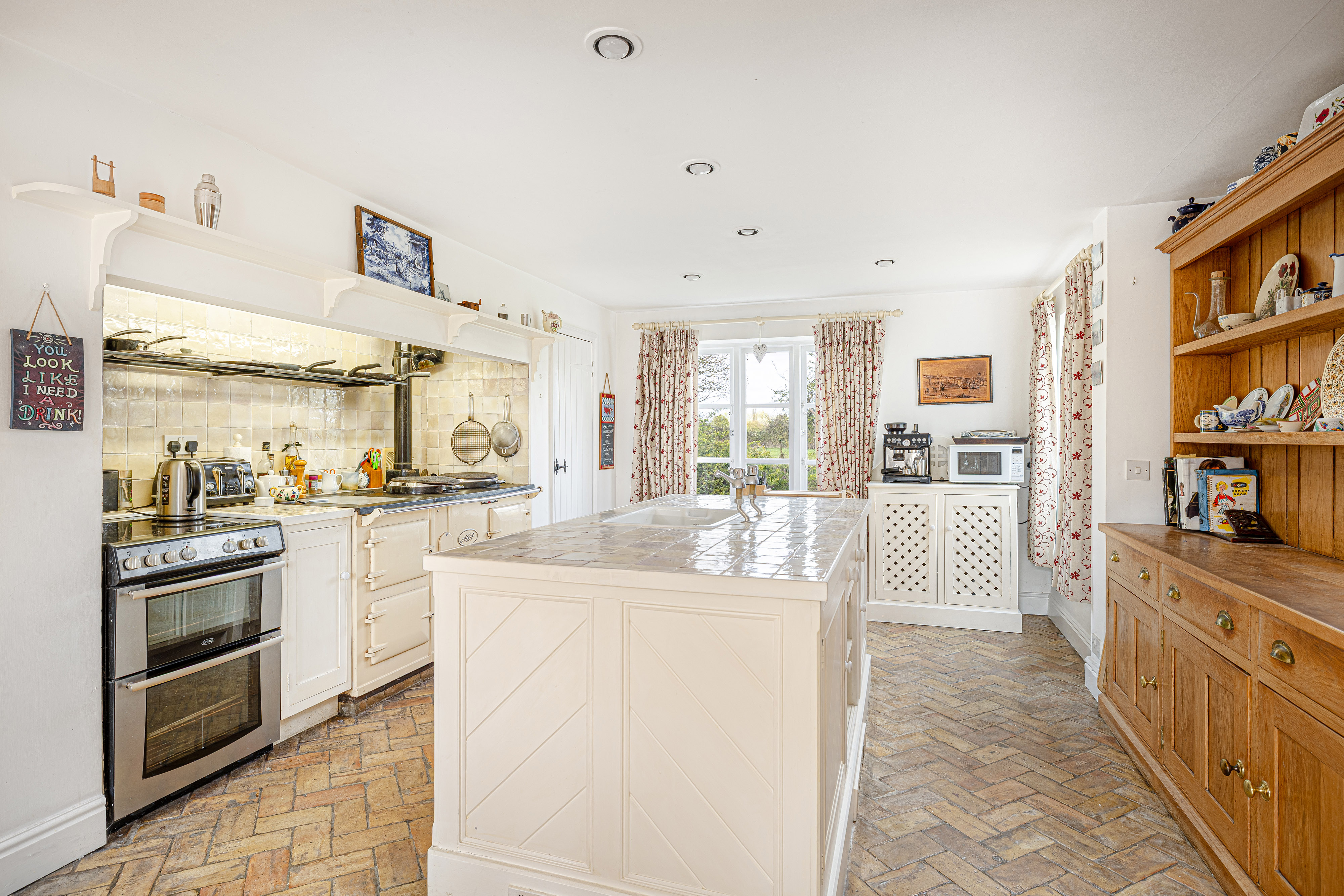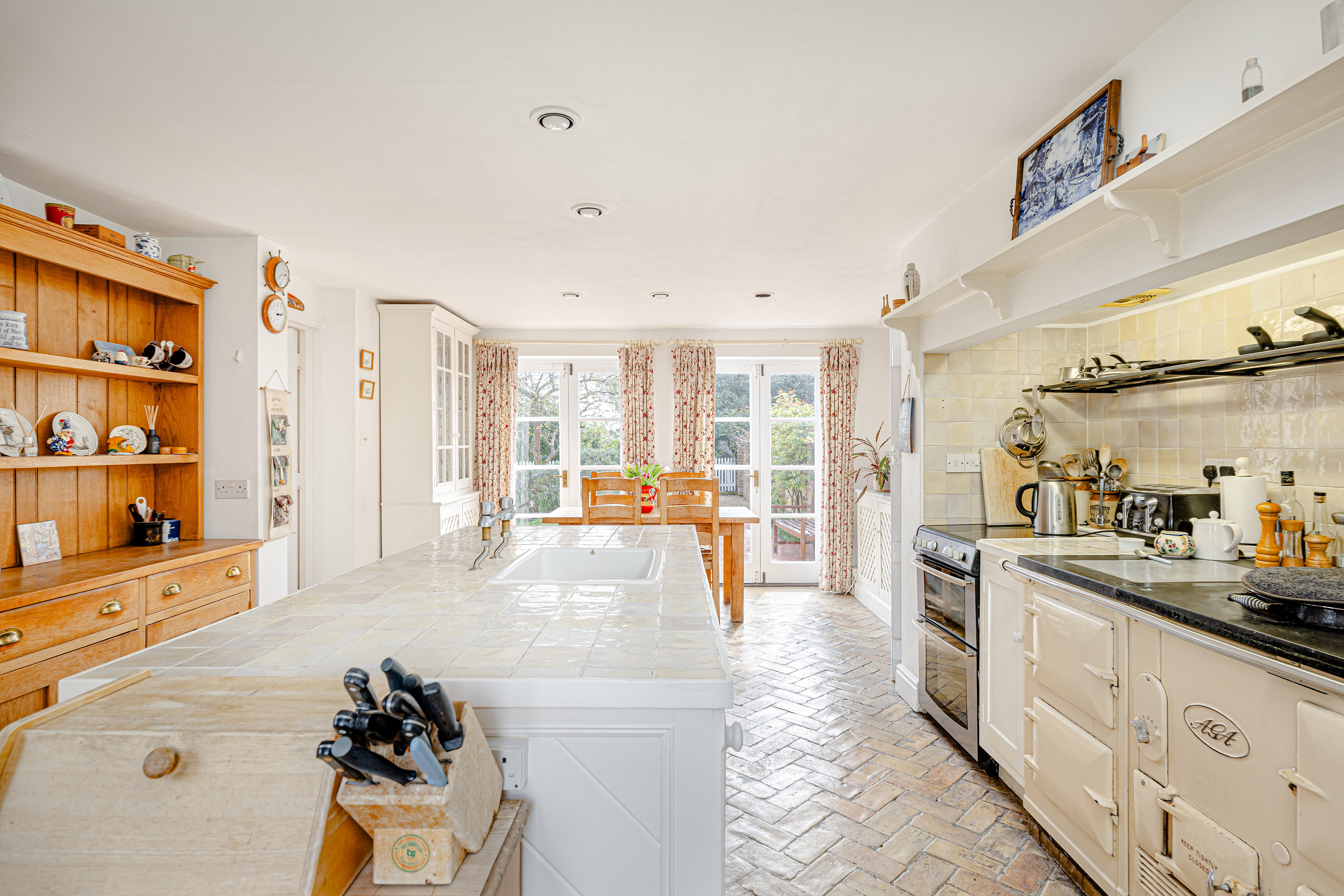 - Generous kitchen/breakfast room with central island, oil-fired AGA and doors opening to the terrace