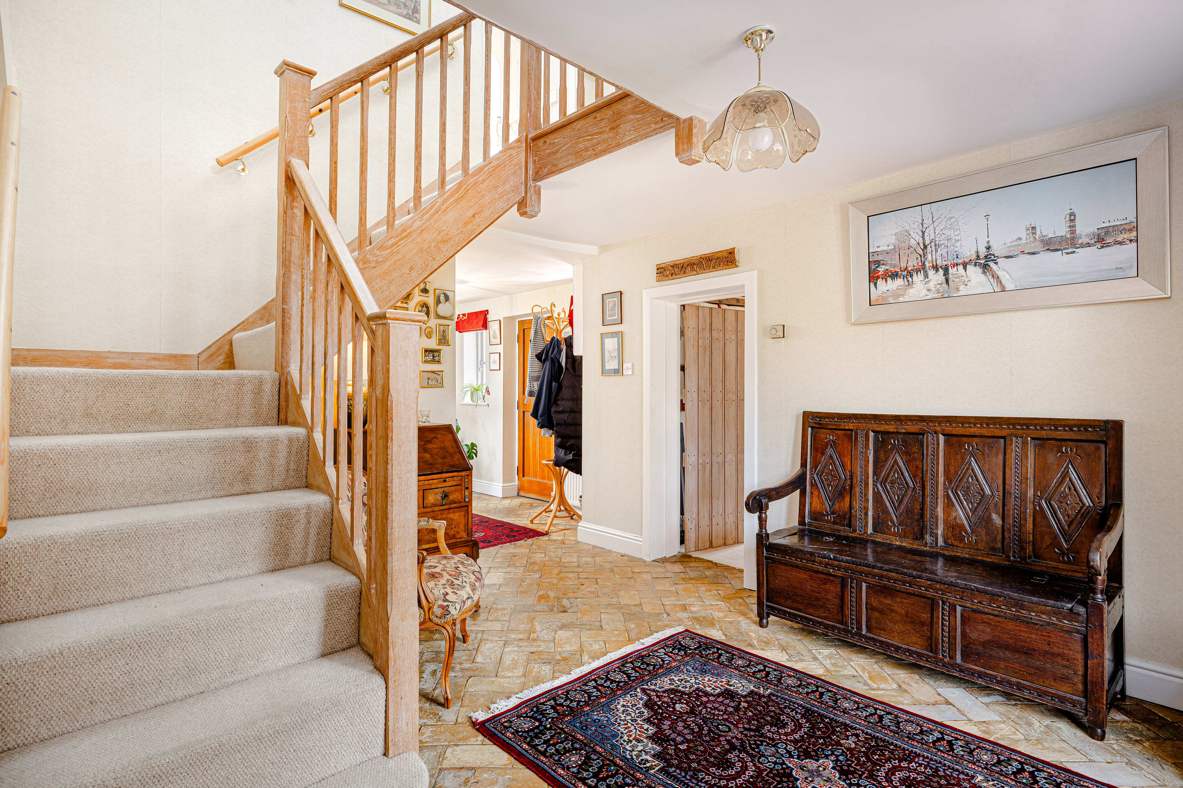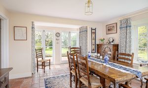 Extending to approximately 2,716 sq ft, the accommodation is arranged over two floors and offers a layout that works beautifully for modern life, while remaining entirely sympathetic to the age and character of the house. Internally, there is a wonderful sense of warmth throughout, with light-filled rooms, natural textures and a series of charming outlooks across the gardens and moat.