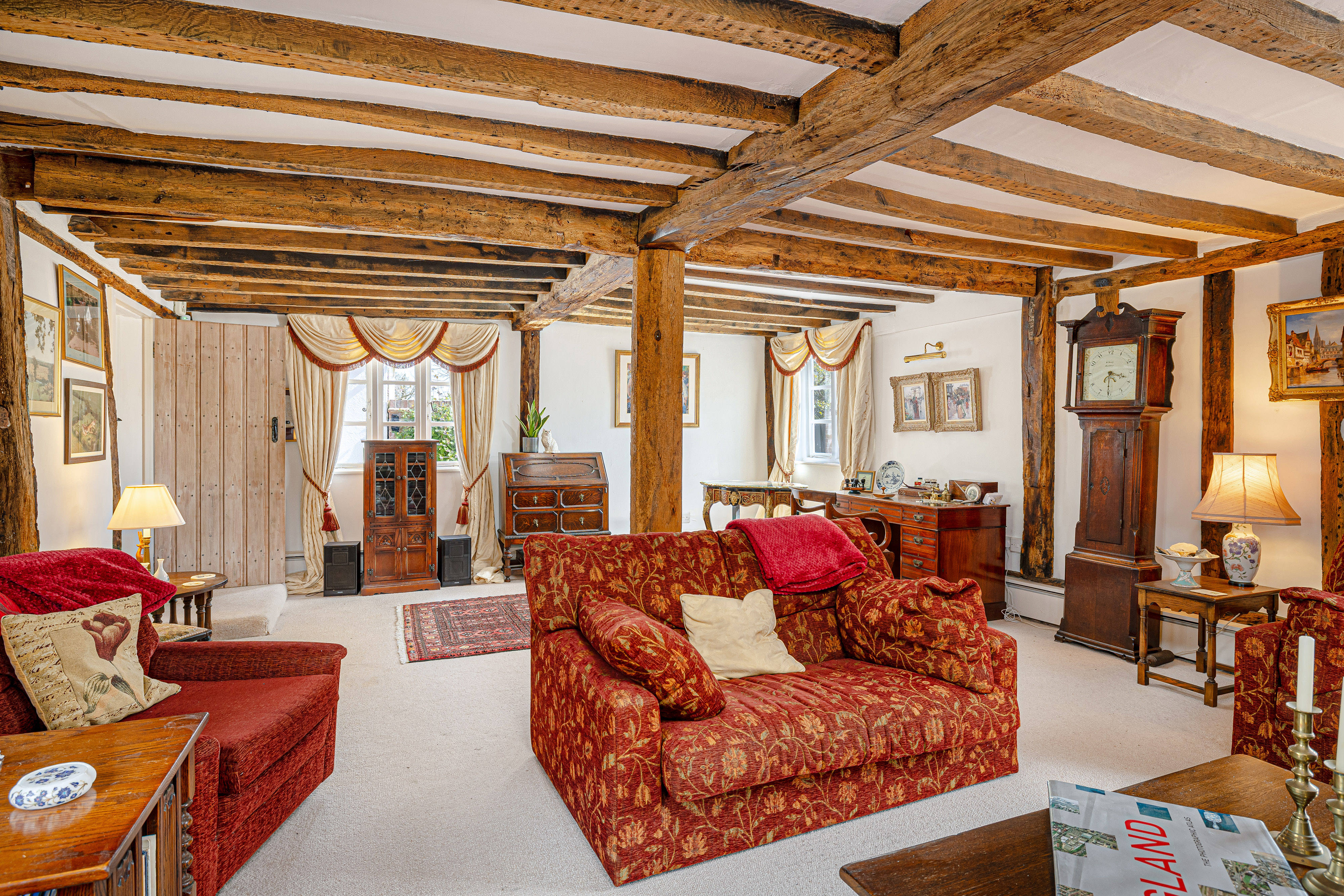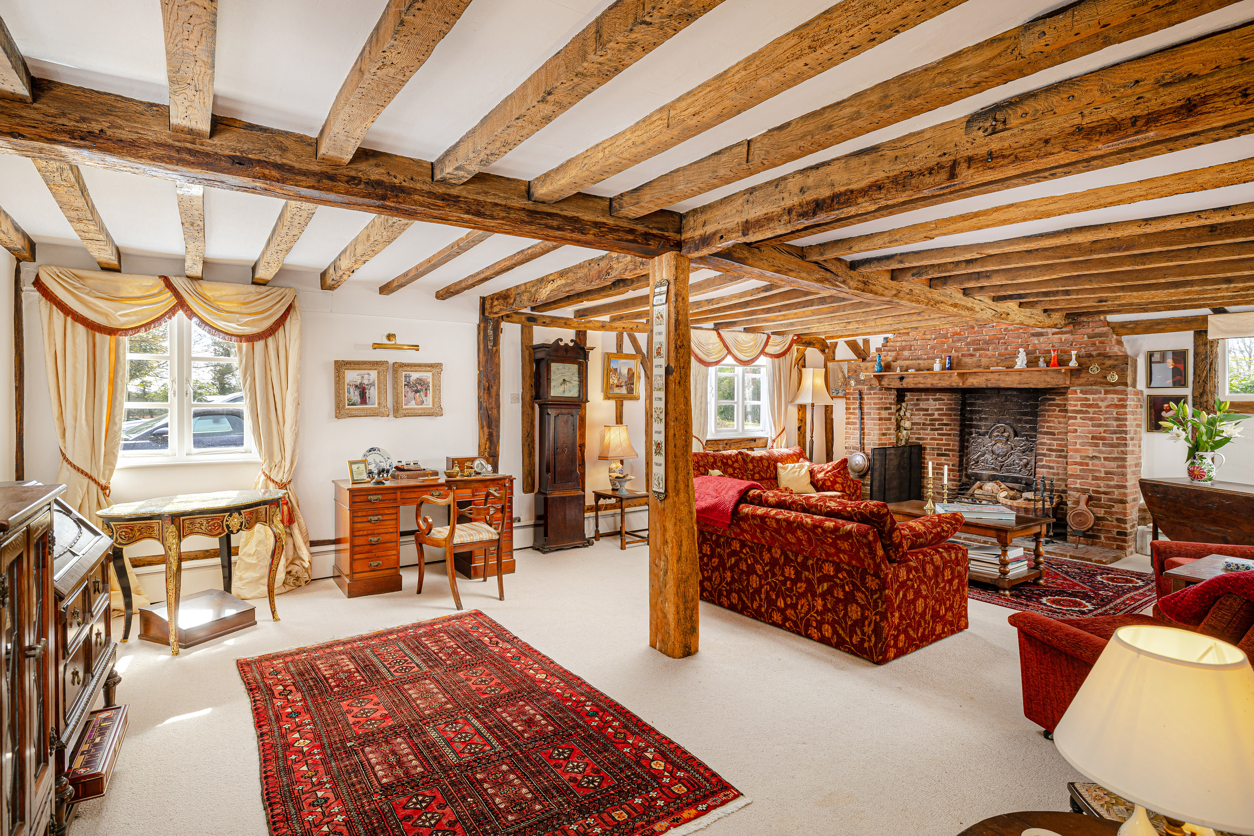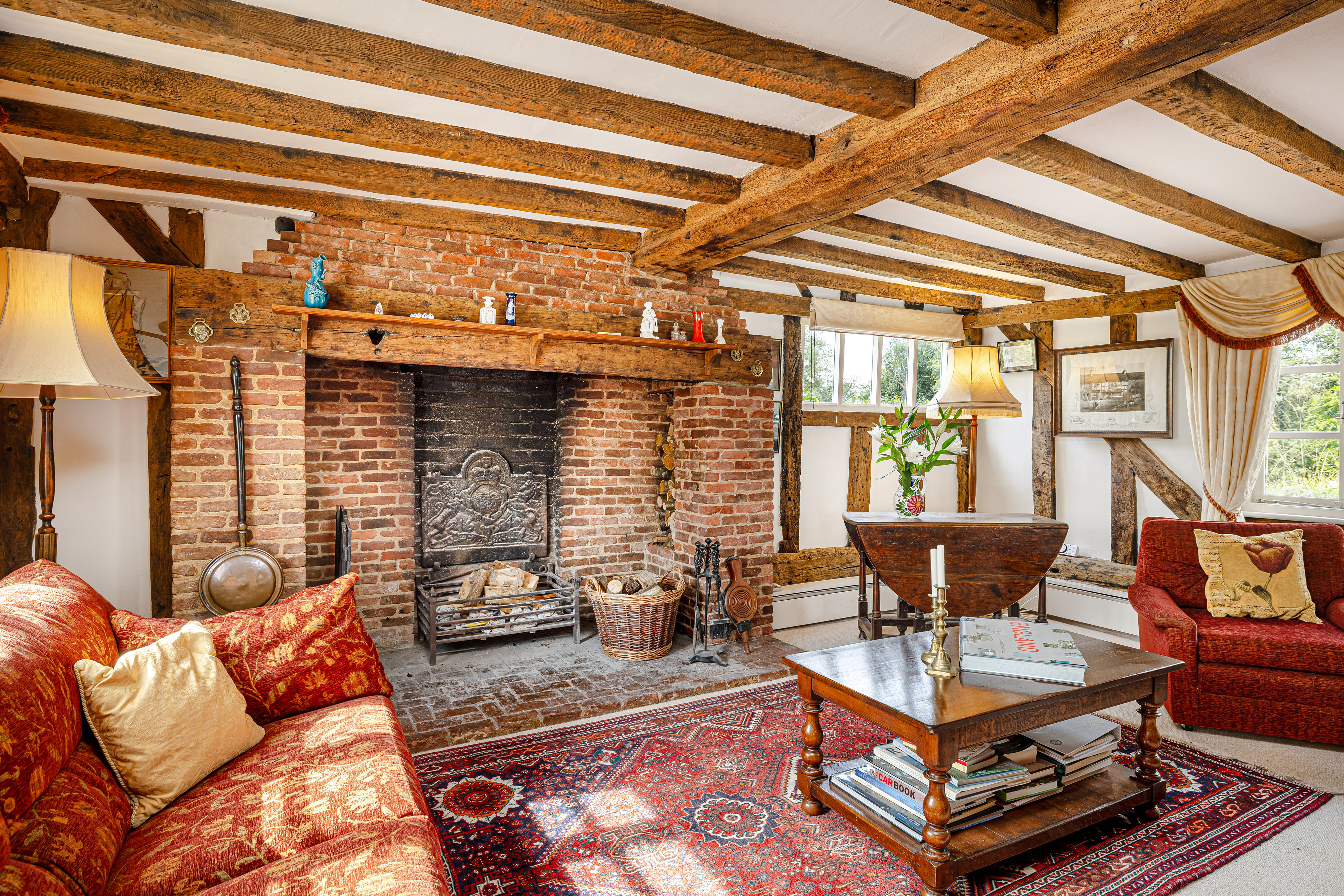 - Magnificent sitting room with substantial exposed timbers and a grand brick fireplace
