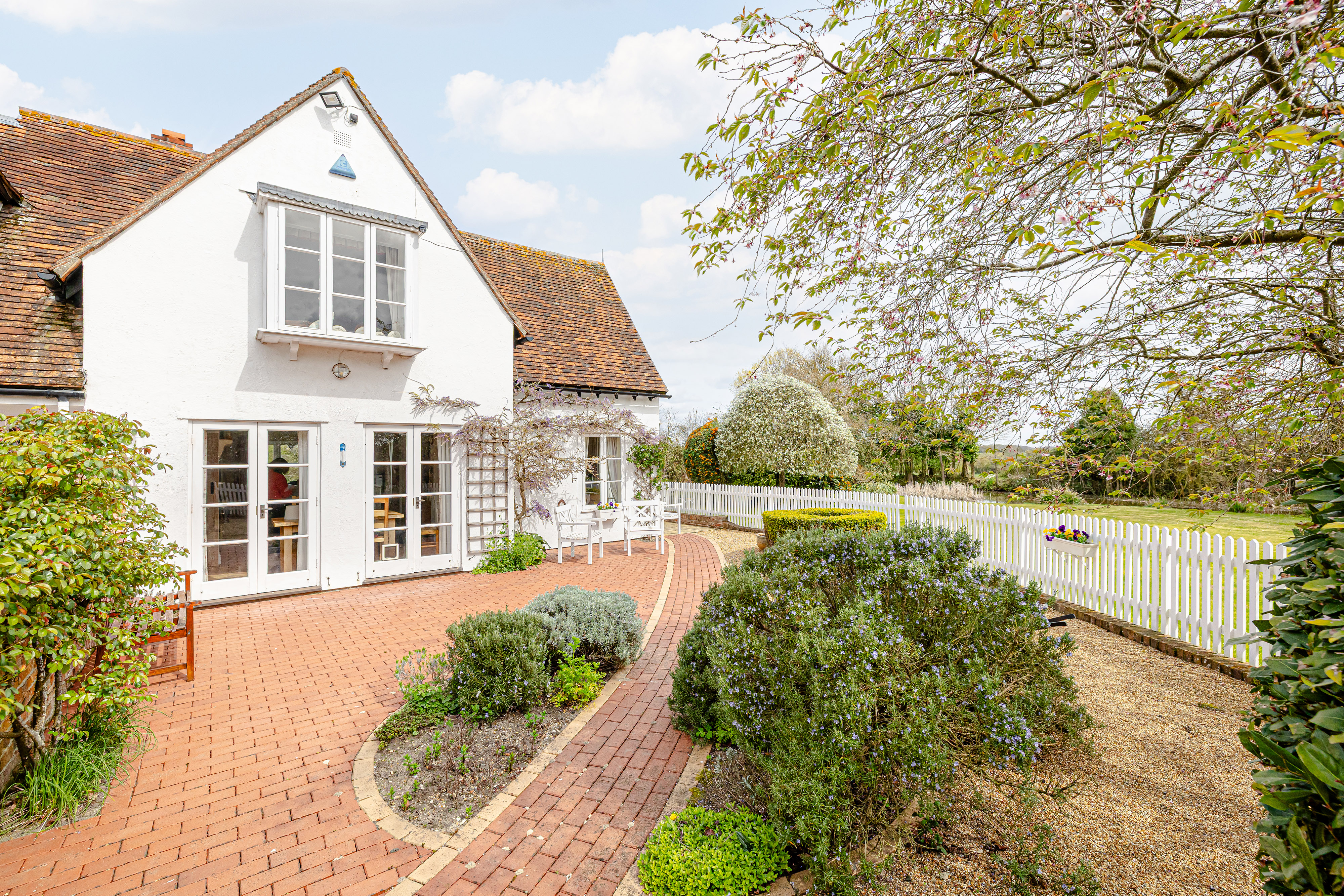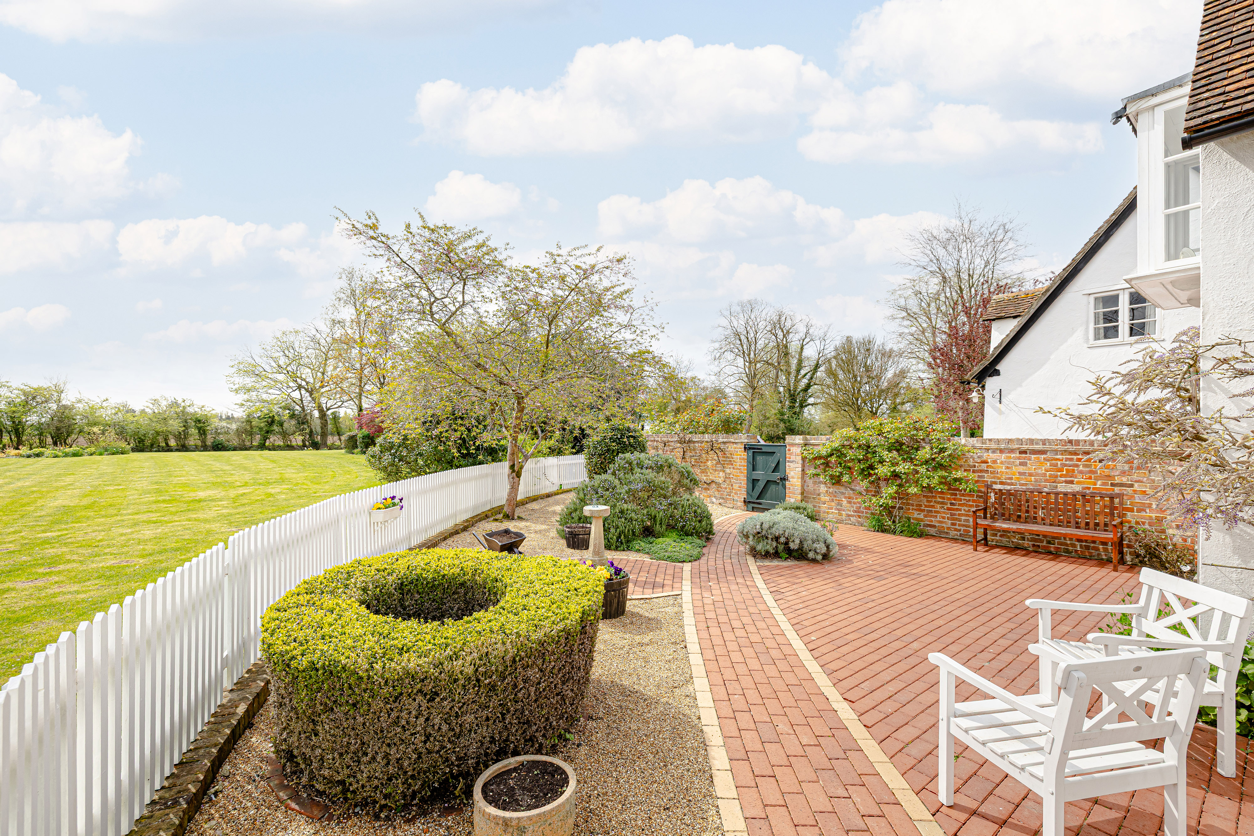 Outside, the grounds are every bit as captivating as the house itself. Formal terraces and enclosed seating areas provide ideal spaces for al fresco dining and quiet relaxation, while the wider gardens sweep around the house to the moat’s edge. The detached outbuilding adds further practicality, and the overall setting offers a rare lifestyle opportunity defined by beauty, privacy and history.