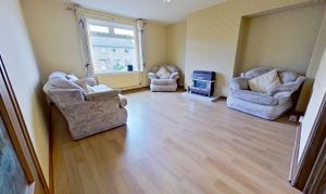 Spacious sitting room with front facing window, new curtains and pole. Laminate flooring, radiator. Doors to fitted kitchen and hall.