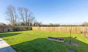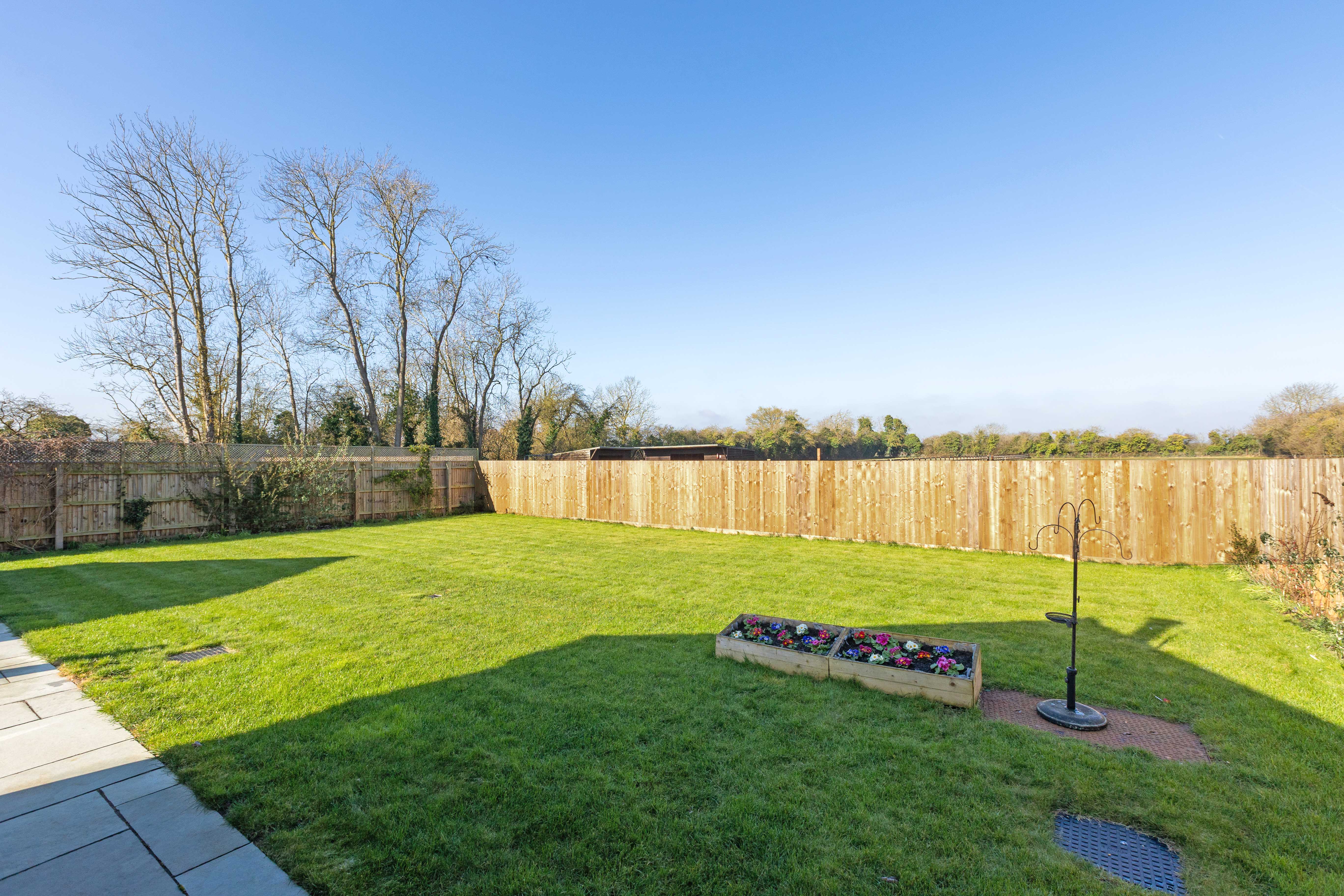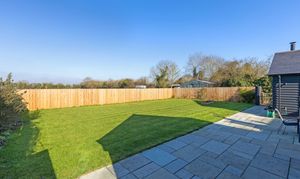 Outside, to the rear, the landscaped garden is a stunning space, fully enclosed by fencing and offering a lovely area to sit and enjoy the sunshine. It is laid mainly to lawn with a beautiful paved patio spanning the width of the property, providing ample space for garden furniture, enjoying meals al fresco and entertaining guests. There are borders and beds, gorgeous views over fields and paddocks to the rear, and lots of scope for future owners to put their own stamp on things.