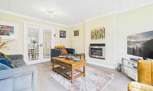 Laminate flooring, wall mounted gas fire, panel radiator, upvc double glazed bay window