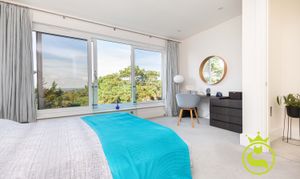 Rising to the top floor, the entire level is dedicated to a luxurious principal suite. Here, a feature-lit walk-in wardrobe, spa-style en-suite with freestanding bath and a walk-in shower. A glass Juliet balcony overlooks the treetops with harbour glimpses offering a true private sanctuary.