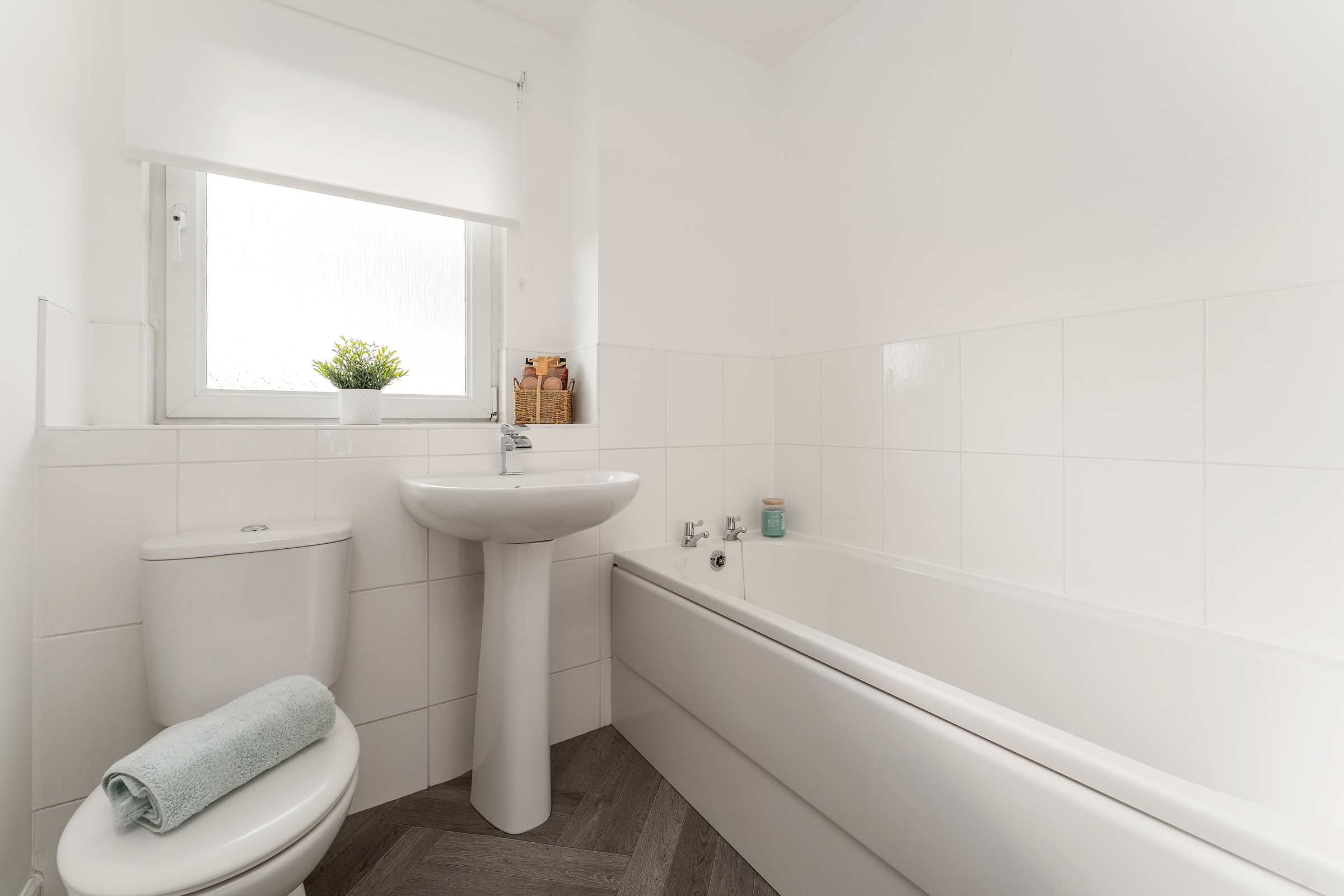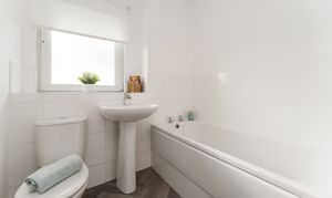 Upstairs, on the first floor, there are two double bedrooms (one facing the front and the other facing the rear of the property) plus a family bathroom. The bathroom is partially tiled, with fresh décor, and the option to add a shower over the bath, if desired.
