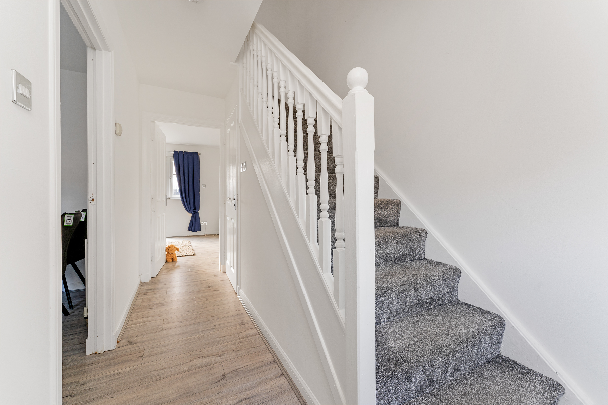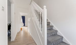 Upon entering the welcoming hallway, the kitchen/dining area is to the left, downstairs w.c. to the right, and access to the lounge straight ahead. The downstairs hall comprises newly installed laminate flooring, with a carpeted staircase to both the first and second floors.