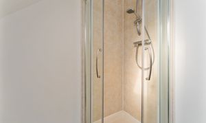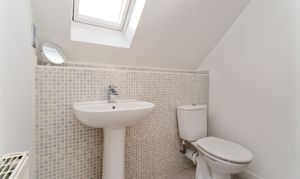 The partially tiled, en-suite features a velux window, and the shower unit contains a power shower.