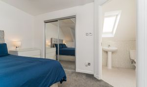 Upstairs, onto the second floor, is the fantastic master bedroom and en-suite. Featuring a velux window, the room currently hosts a king size bed, bed side tables, and a large chest of drawers. And the walk-in fitted wardrobe is amazing!