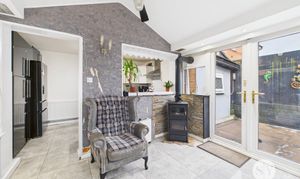 A BRILLIANT FOUR BEDROOM SEMI DETACHED PROPERTY IN MILL HILL. This well-presented semi-detached home offers spacious and versatile accommodation arranged over two floors. The ground floor comprises a welcoming lounge with stairs leading to the first floor, a modern kitchen fitted with sleek black and white gloss units, and an impressive orangery that opens from the kitchen, creating a bright and airy living space. The orangery features a log burner, making it ideal for year-round use and entertaining. Also on the ground floor is a generous double bedroom benefiting from an en-suite bathroom, providing flexible living or guest accommodation.