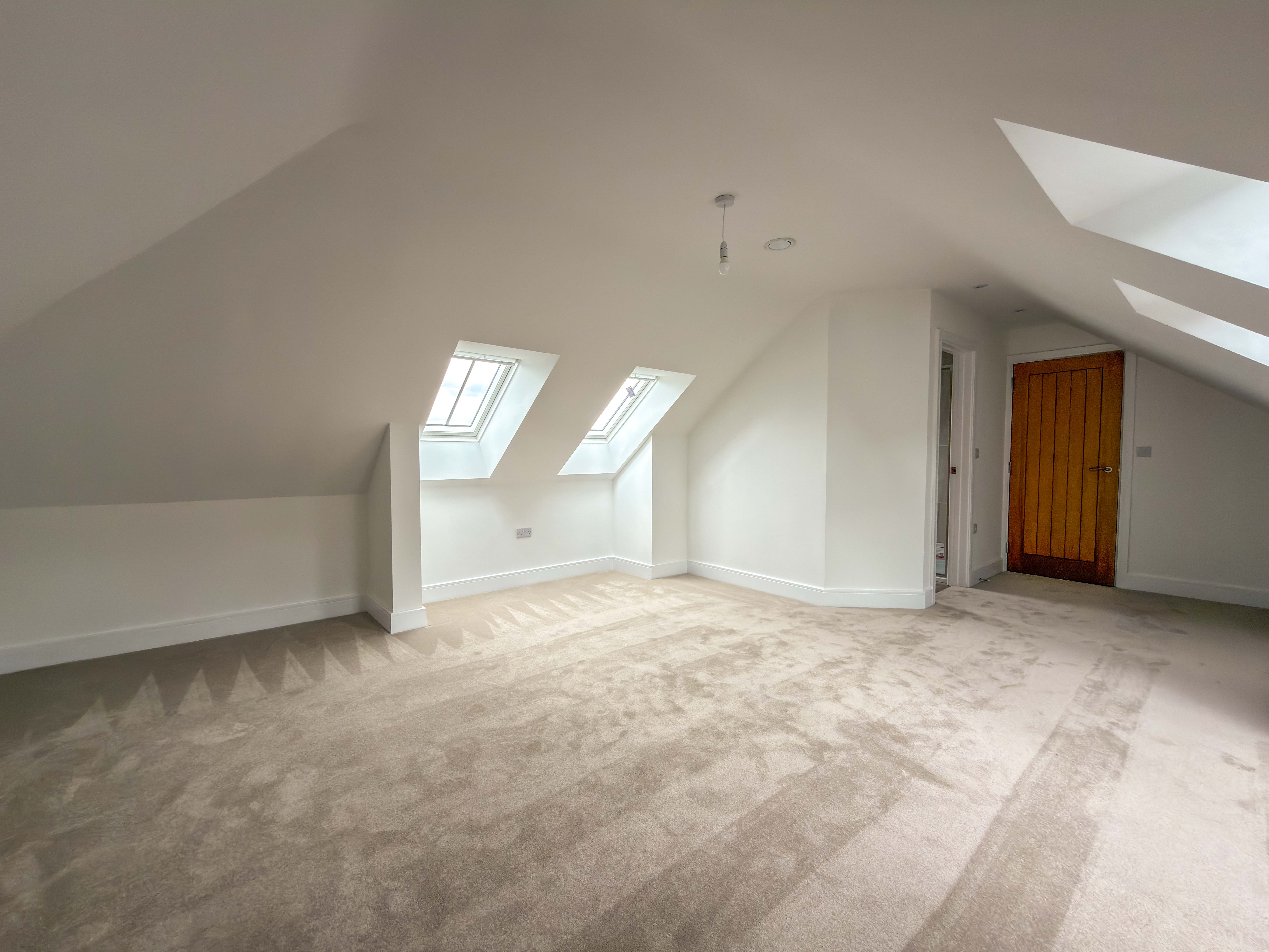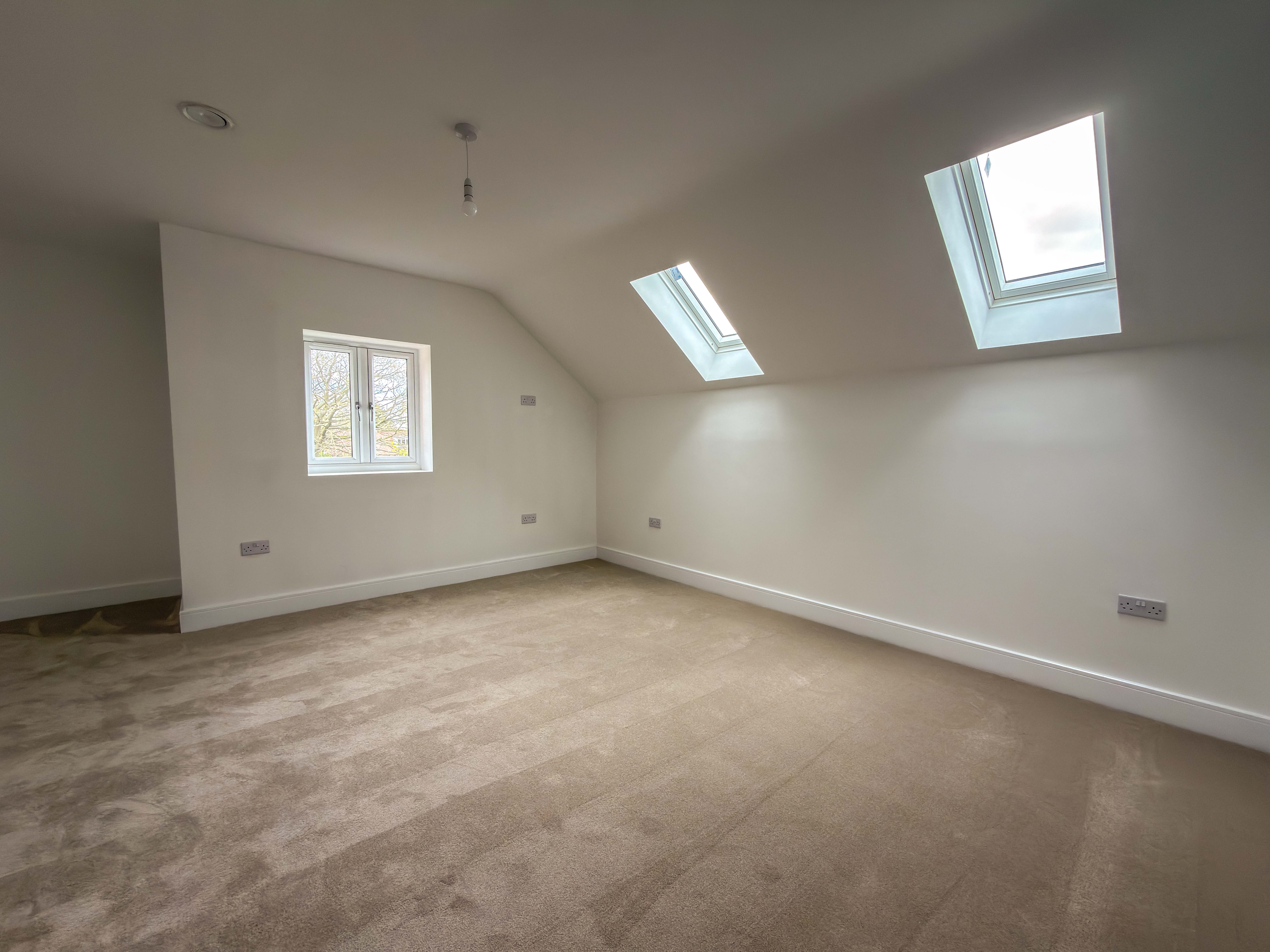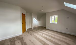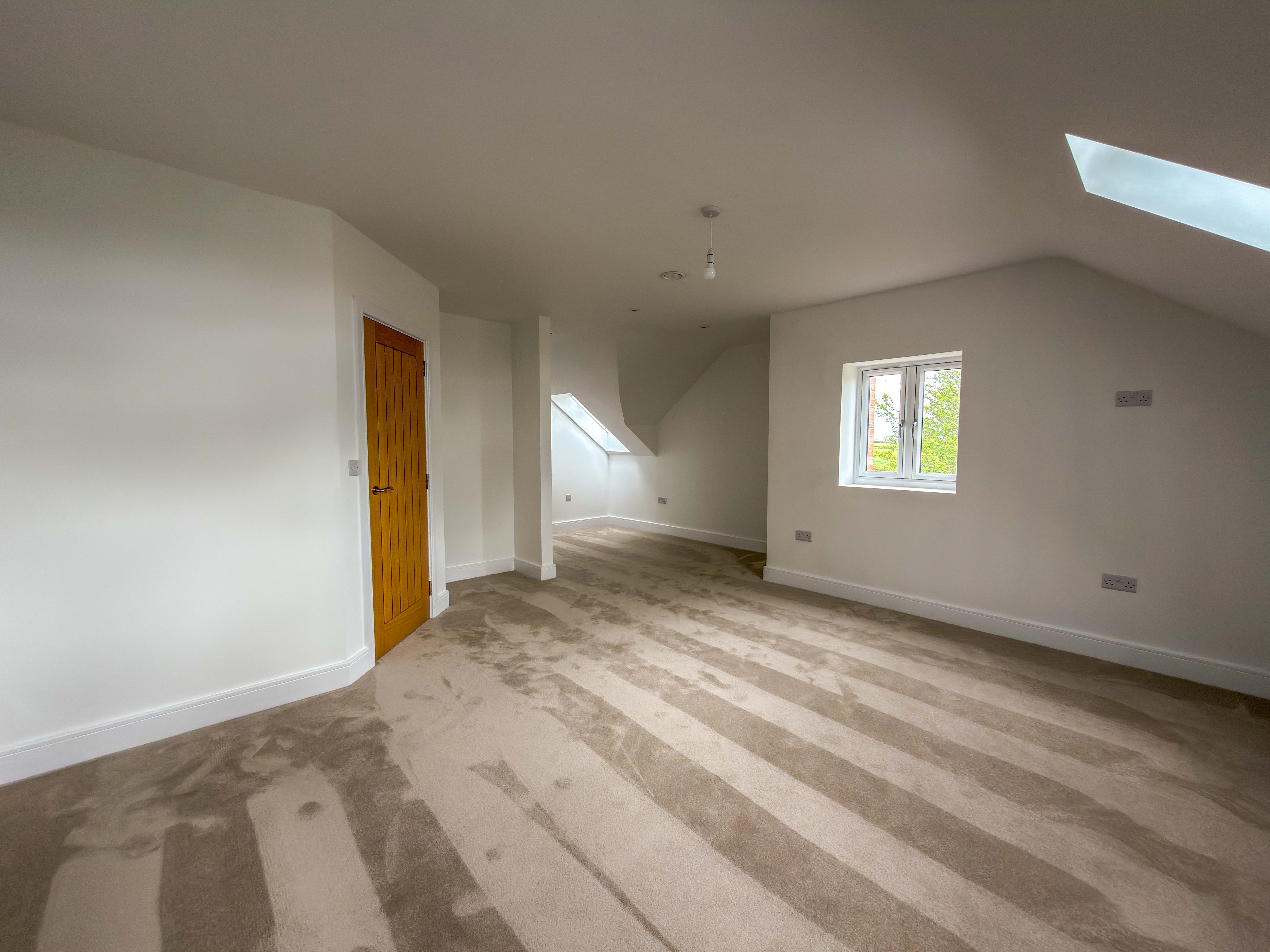 The principal bedroom is an intelligently arranged and spacious suite, incorporating a walk-through dressing area, ideal for fitted wardrobes, and a luxurious en-suite bathroom. Several windows add charm and character, enhancing the individuality of the room. Bedrooms two and three are both spacious doubles and each benefit from their own en-suite facilities, and velux windows, while bedroom four is another excellent sized room, distinguished by a striking gable-height window that frames beautiful rolling views to the rear. This bedroom is served by a beautifully appointed family bathroom.