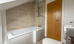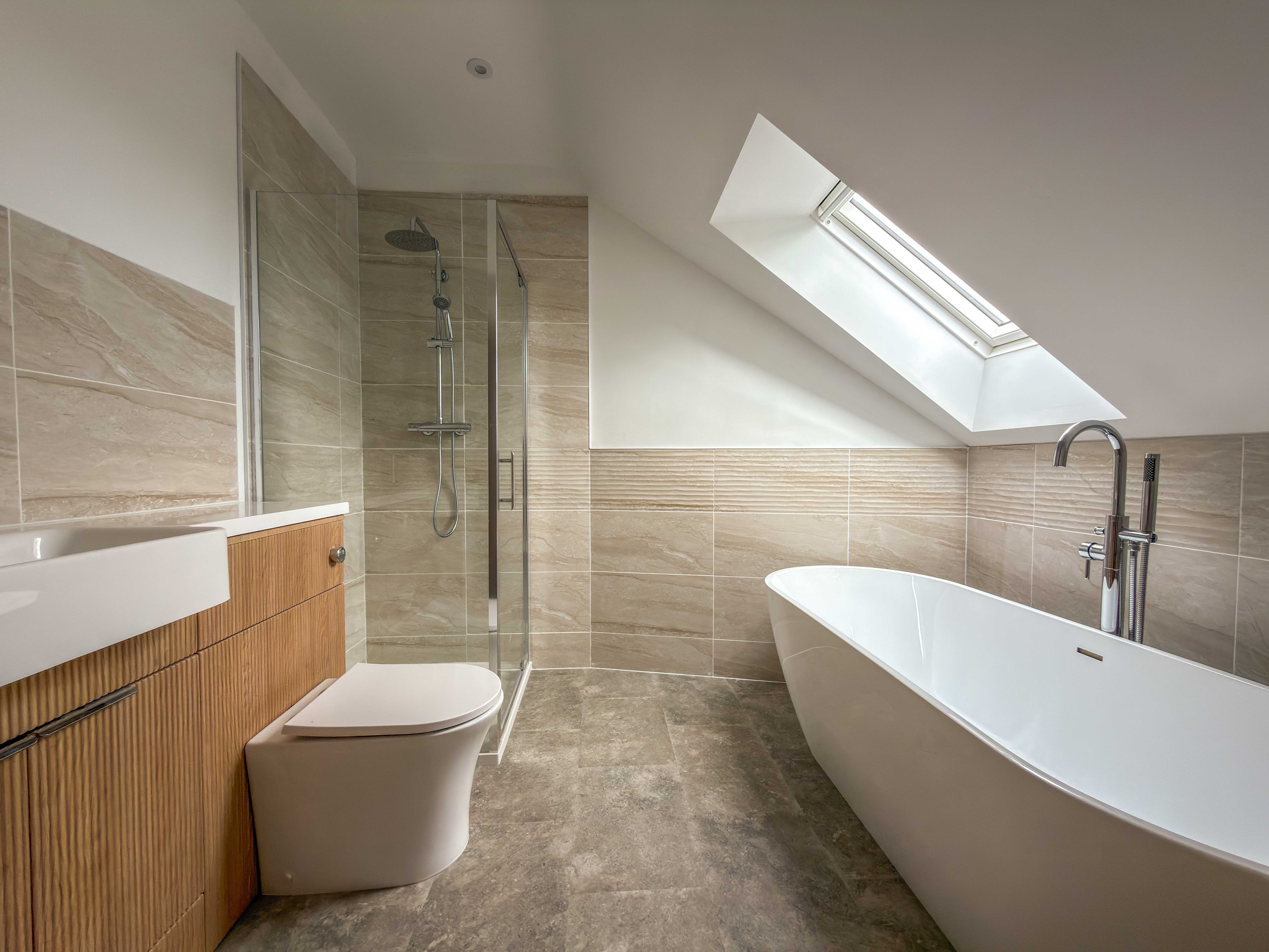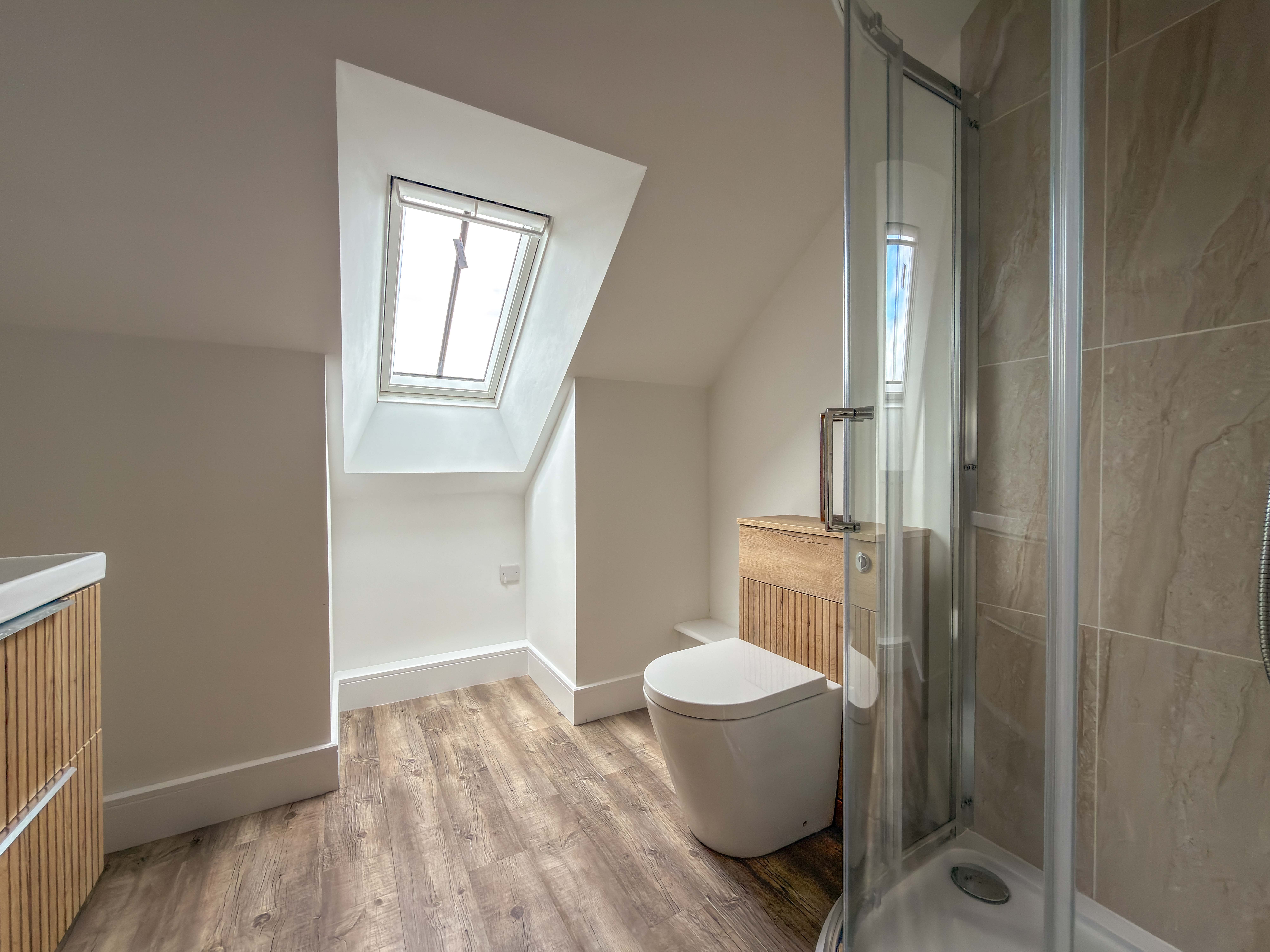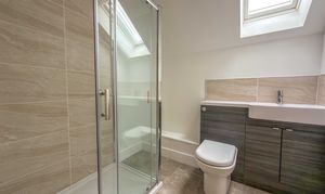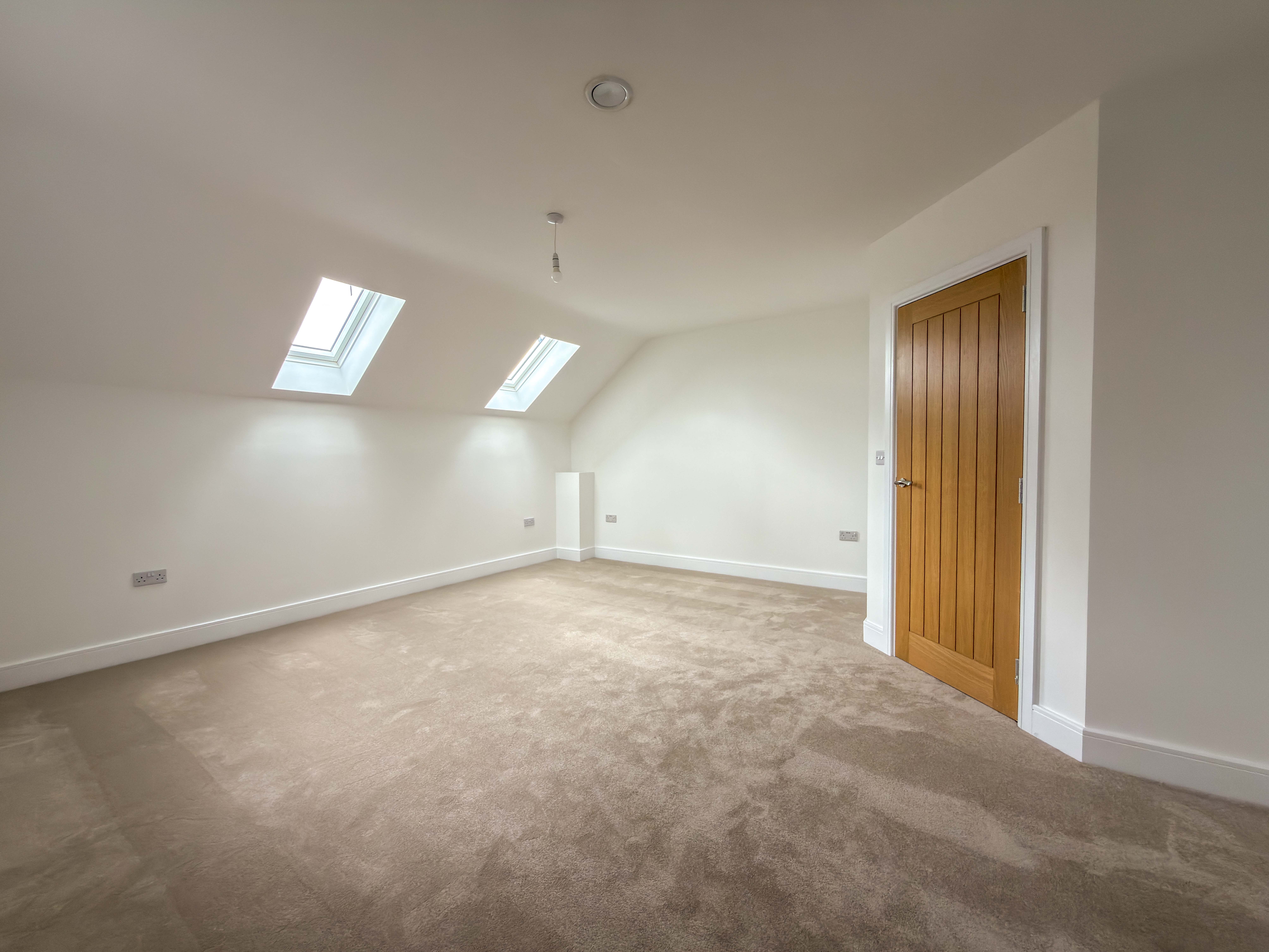 The principal bedroom is an intelligently arranged and spacious suite, incorporating a walk-through dressing area, ideal for fitted wardrobes, and a luxurious en-suite bathroom. Several windows add charm and character, enhancing the individuality of the room. Bedrooms two and three are both spacious doubles and each benefit from their own en-suite facilities, and velux windows, while bedroom four is another excellent sized room, distinguished by a striking gable-height window that frames beautiful rolling views to the rear. This bedroom is served by a beautifully appointed family bathroom.