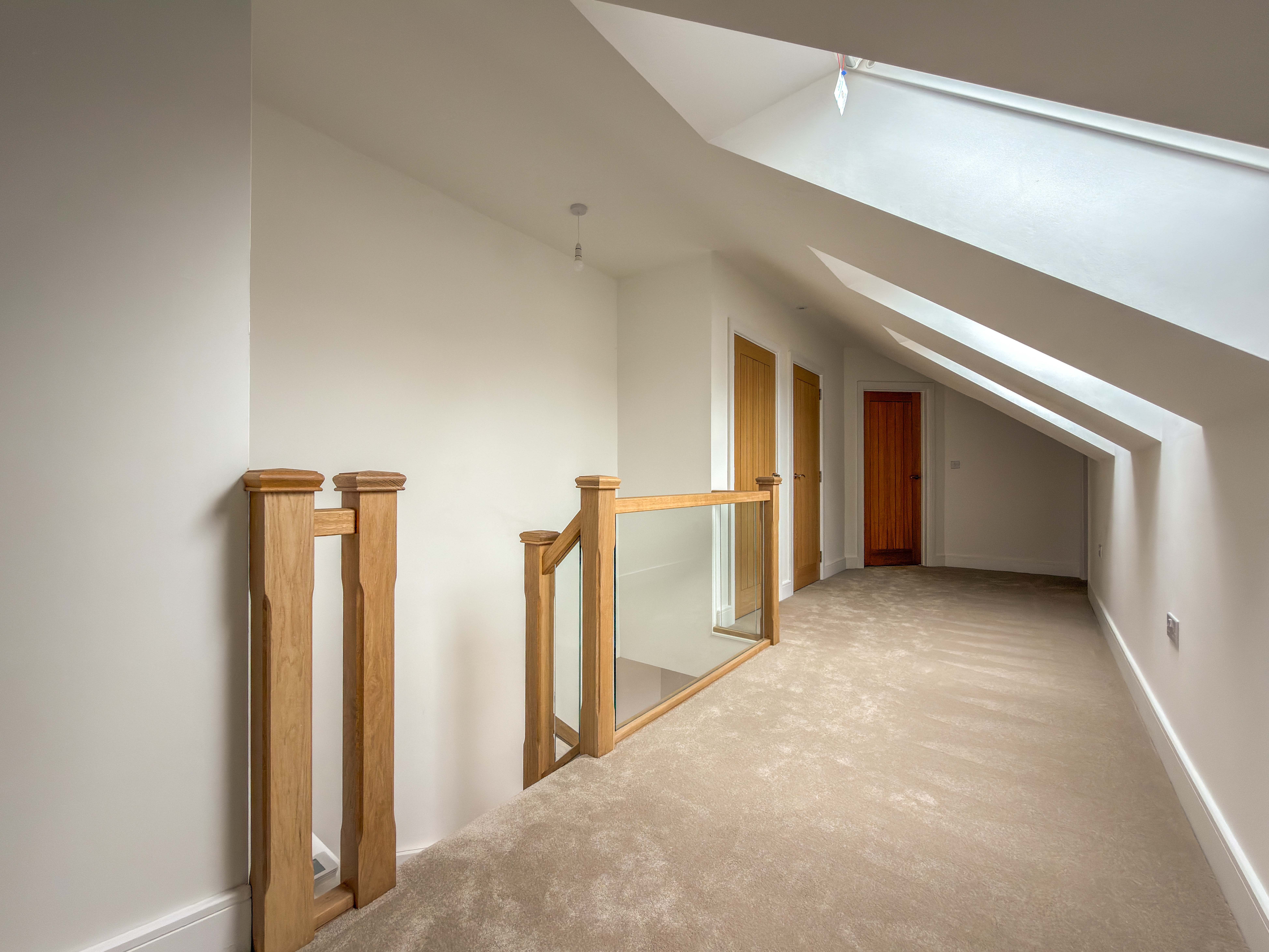 Ascending to the first floor, the accommodation is equally impressive. A beautiful galleried landing, lined with Velux windows, floods the space with natural light and reinforces the sense of openness that runs throughout the property. The home offers four genuine double / king sized bedrooms, all generous in size and individually designed with real attention to detail.