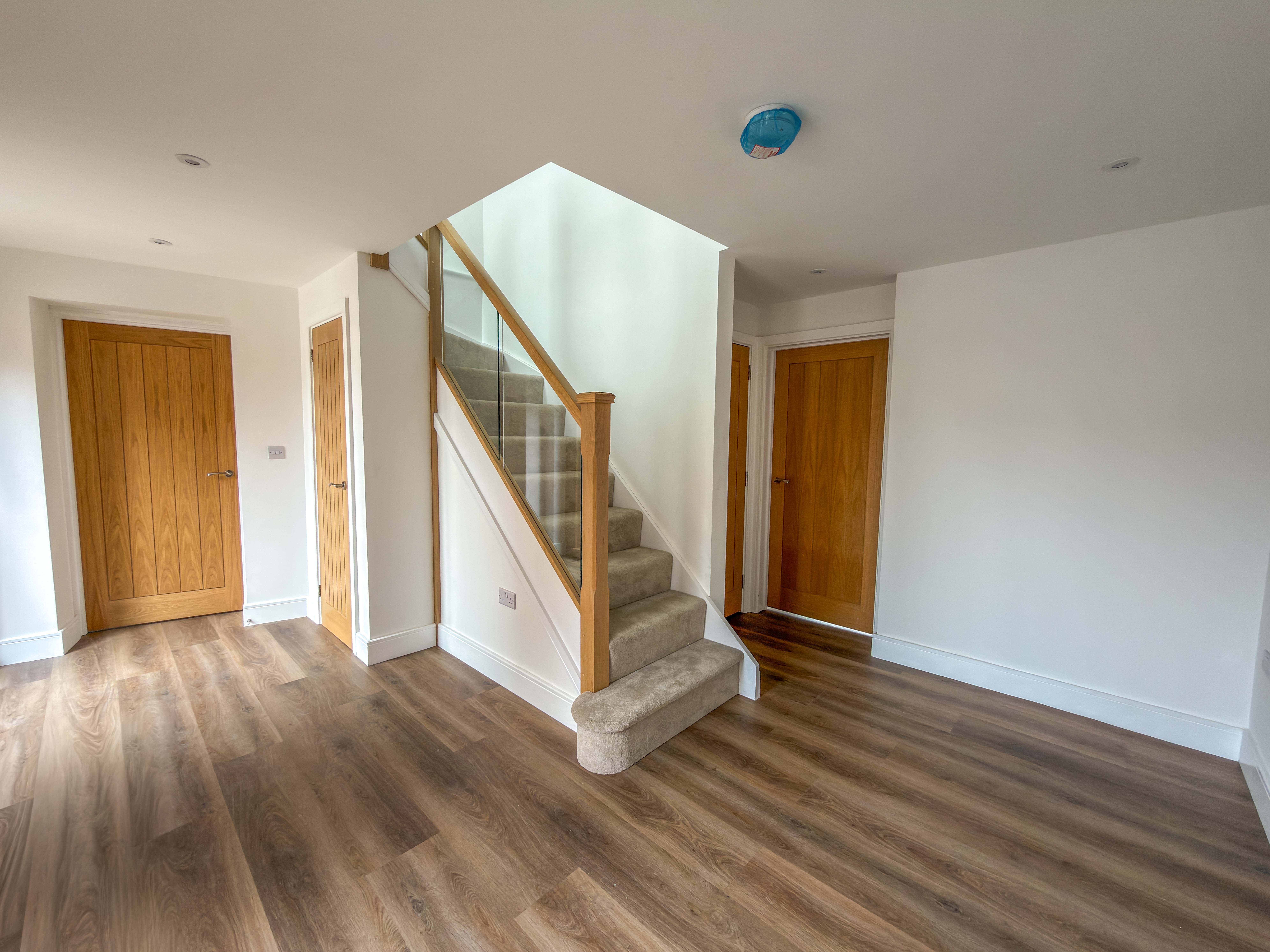 From the moment you step inside, the quality of finish is unmistakable. A beautiful entrance hallway immediately sets the tone, providing access to the principal ground floor rooms and creating a superb first impression. Wood-effect LVT flooring runs throughout the entire ground floor and a striking hardwood staircase with glazed insets forms a central design feature, bringing both warmth and contemporary style.