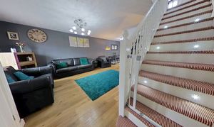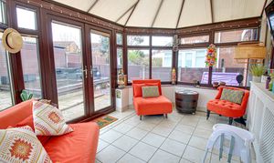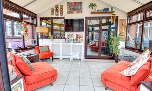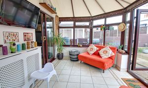 This impressive four-bedroom, two-bathroom detached house combines contemporary style with generous living spaces and a wealth of desirable features. The property welcomes you with a well-maintained front garden, enhancing kerb appeal with its neat lawn, mature shrubs, and classic brick façade. A gated, paved driveway offers ample off-road parking and leads to a spacious attached garage, providing both convenience and practicality. Inside, the home boasts three versatile reception rooms, including a bright and inviting conservatory with expansive windows, tiled flooring, and direct garden access through elegant French doors - perfect for both entertaining and relaxation.